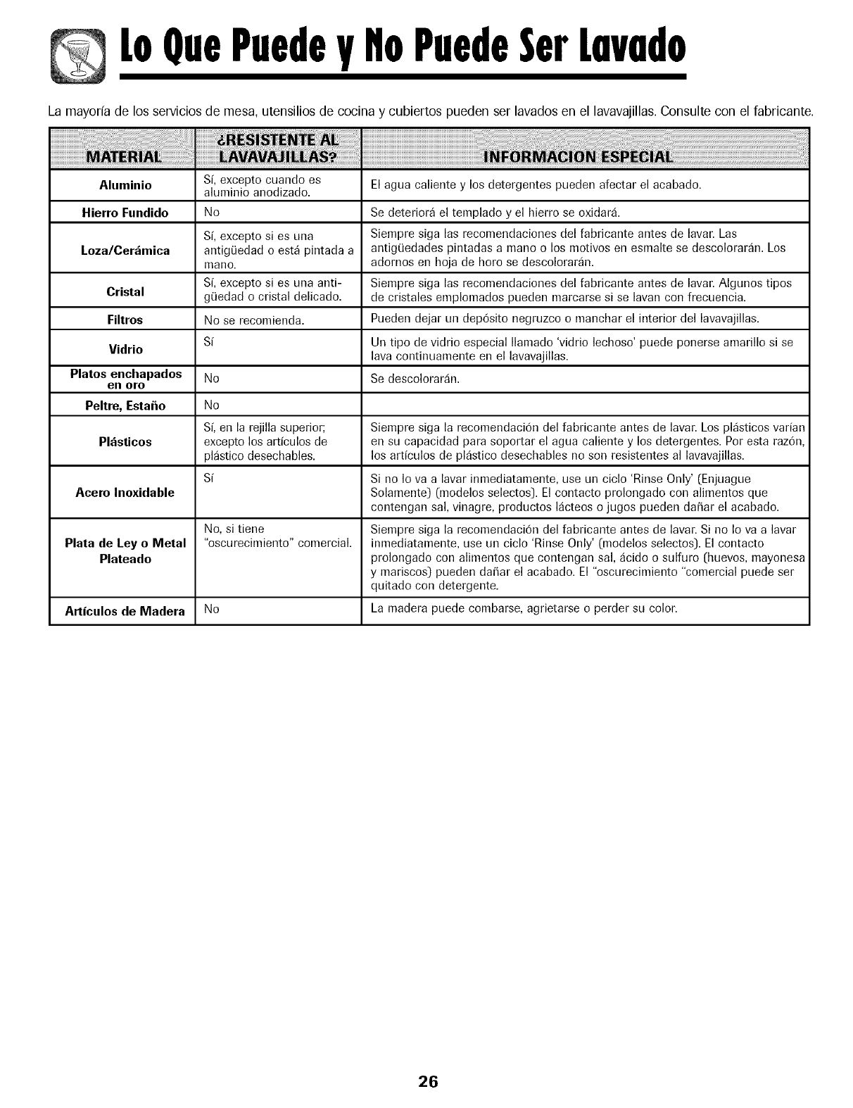 • Ciertos detergentes de lavavajillas pueden manchar los articulos de plata. Use otra marca de