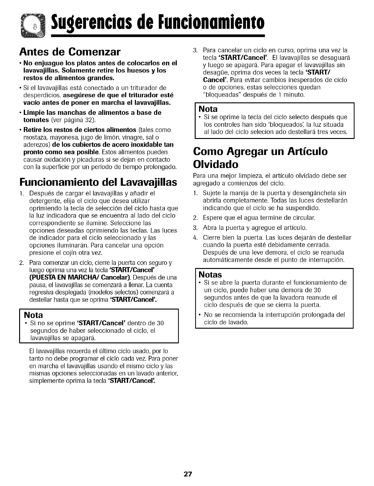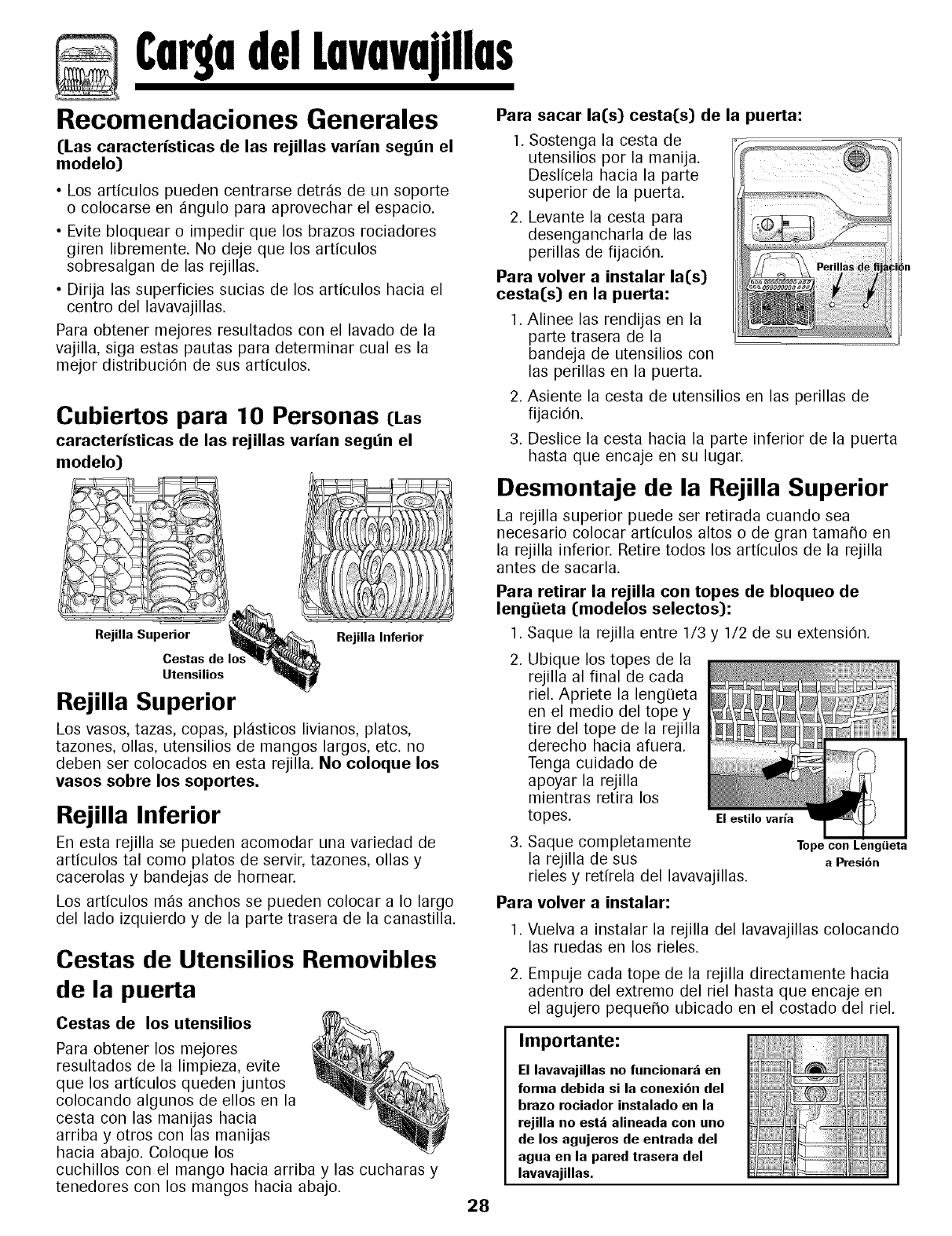 • Coloque los articulos de modo que no bloqueen los brazos rociadores. (P_g. 28).