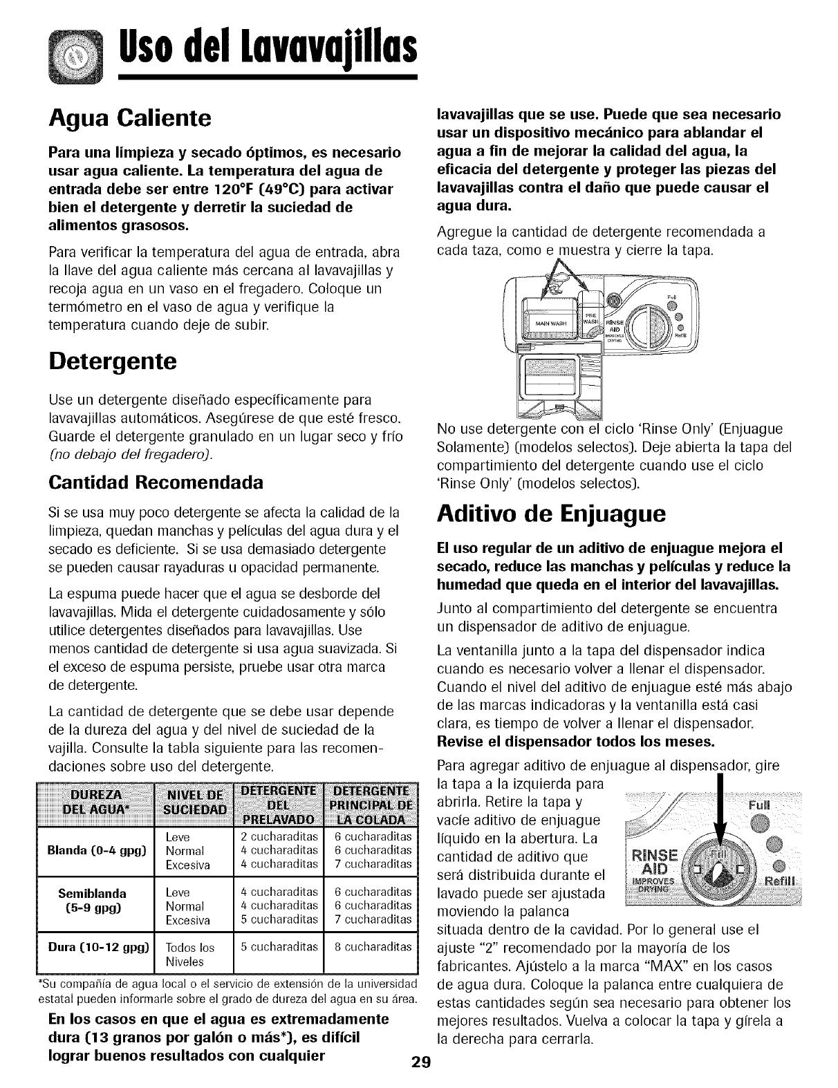 • Aumente la cantidad de detergente de acuerdo con la dureza del agua (Pag. 29).