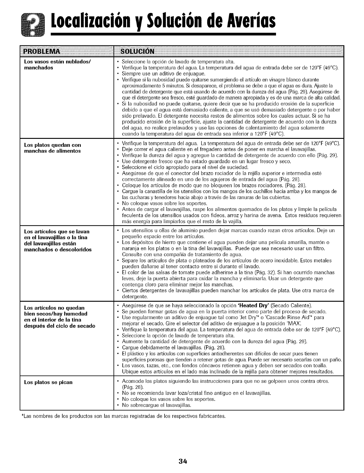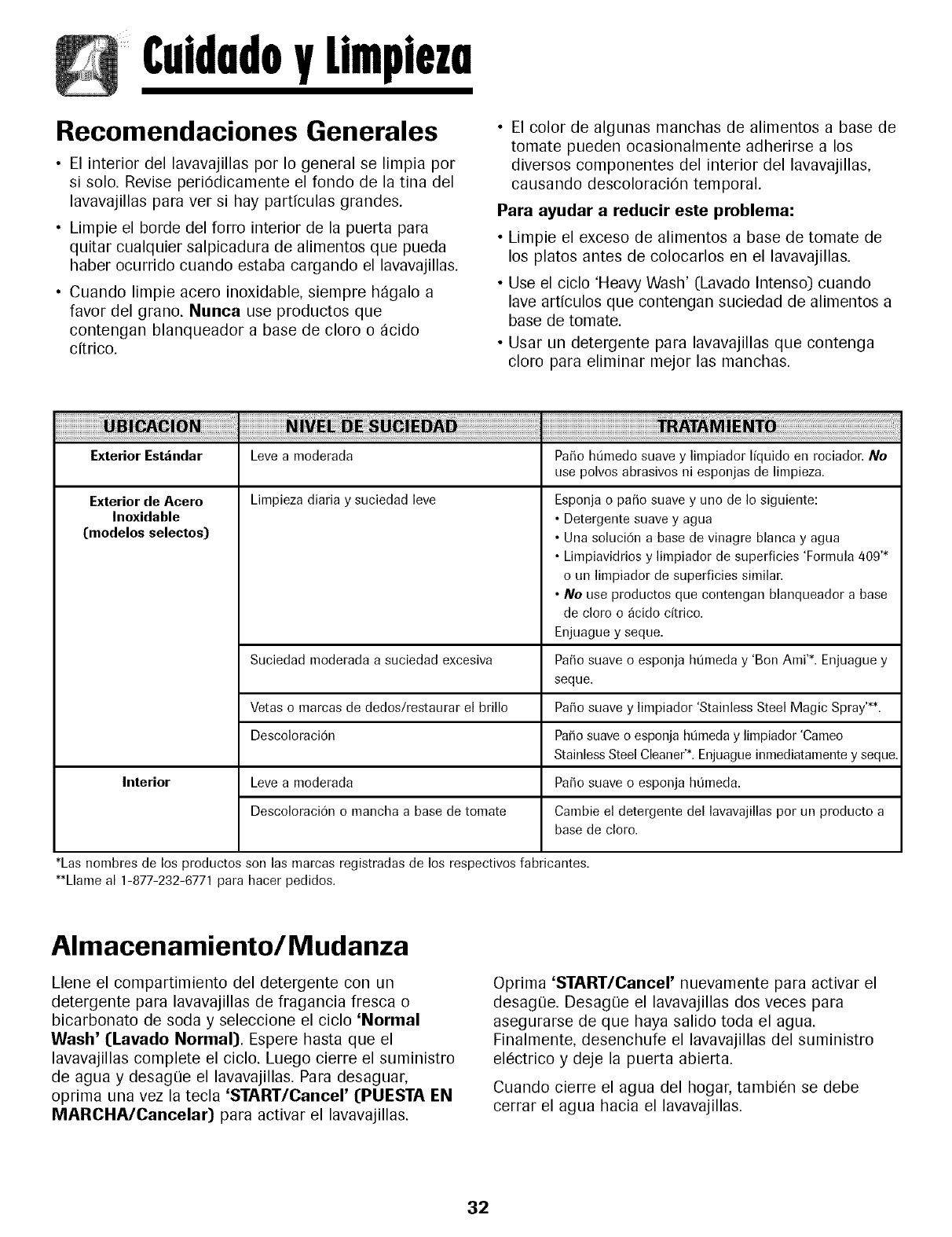 • El color de las salsas de tomate puede adherirse a la tina (P_g. 32). Si han ocurrido manchas