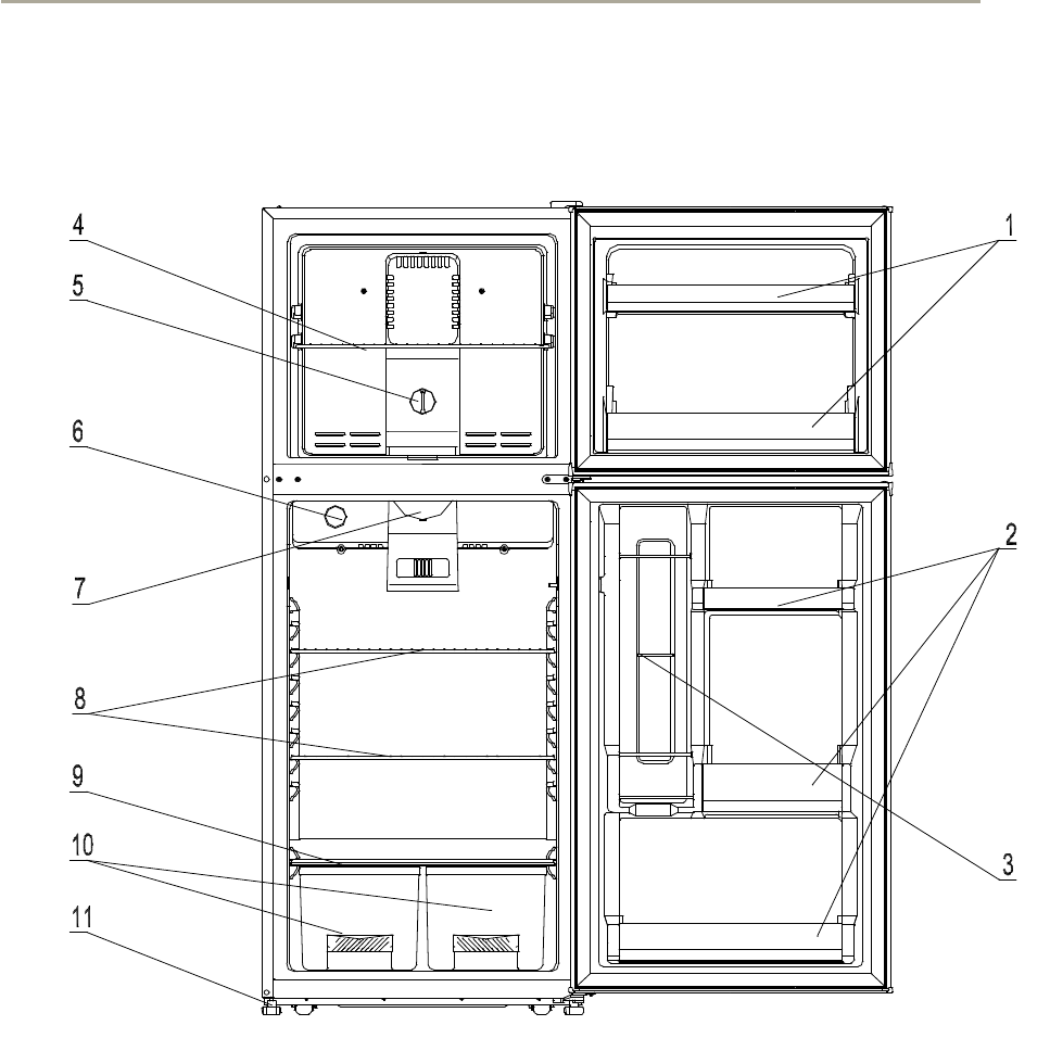 2.REFRIGERATOR BIN 8.REFRIGERATOR SHELF