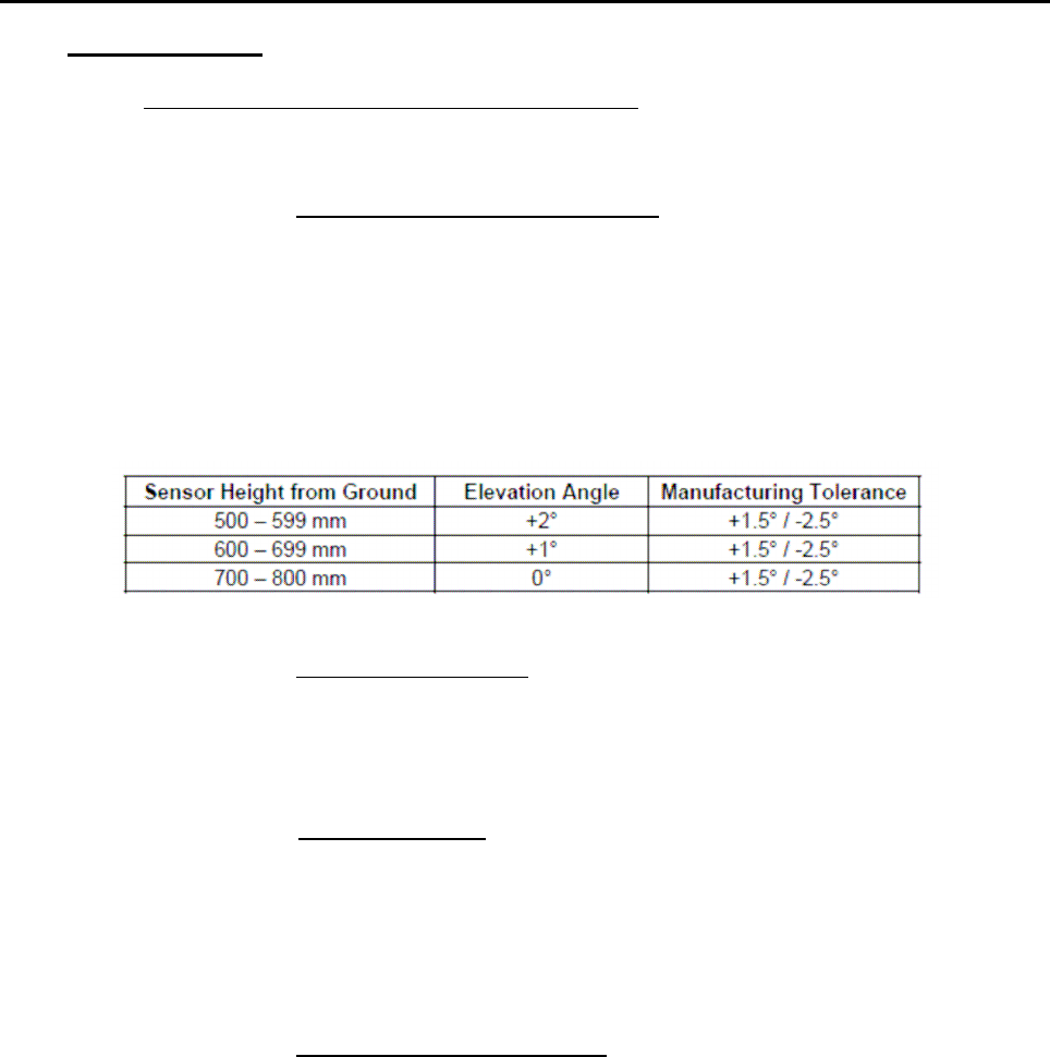 Front Sensors: Azimuth Angle 4° - 7° ± 1° outboar d