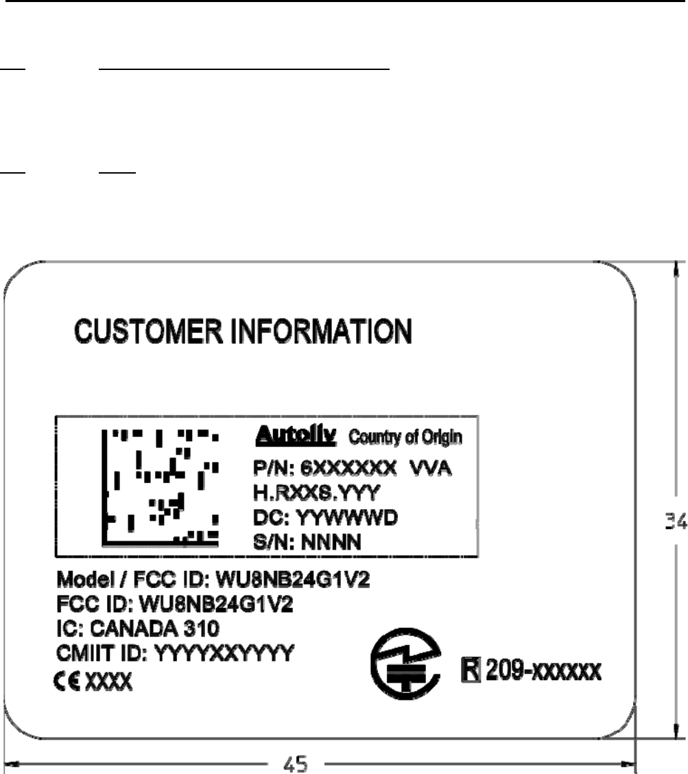 Changes and Modifications not expressly approved by AUTOLIV can void your authority to operate this