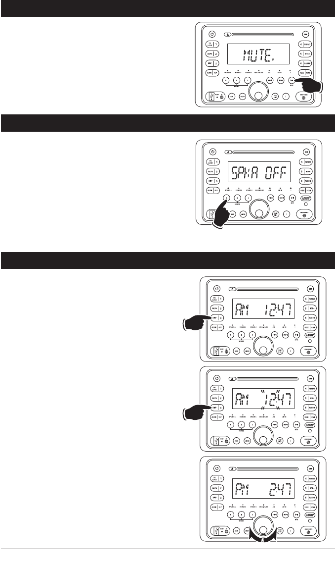 Radio and Multimedia Input Modes: Press to mute volume level. Press again to restore.