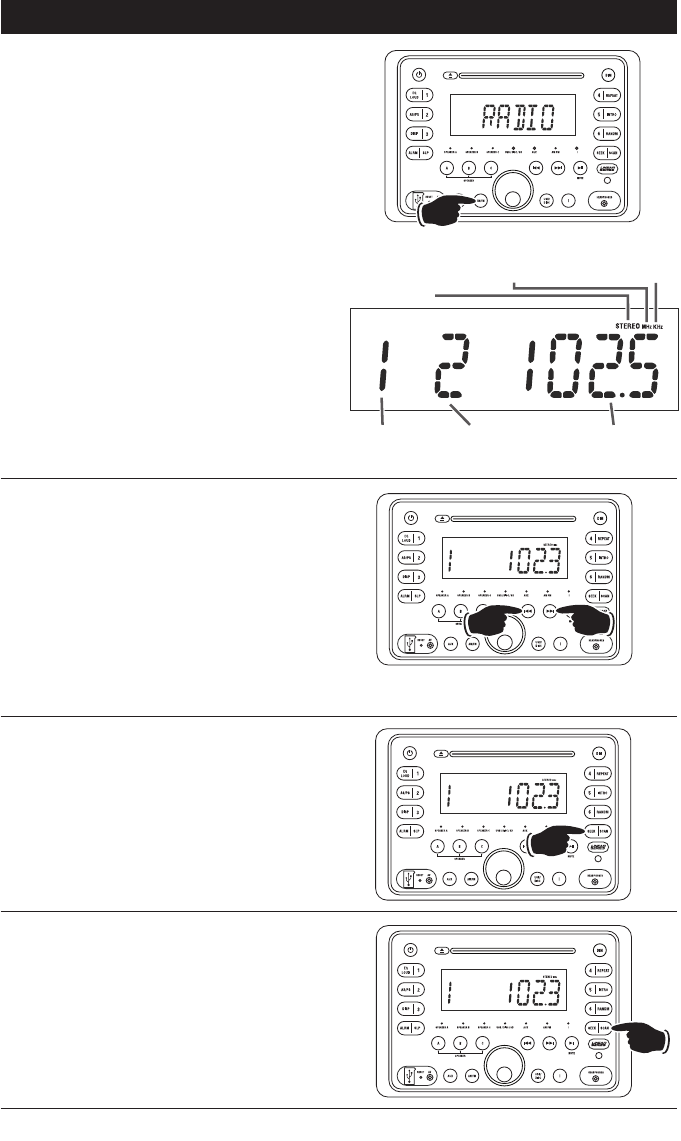 2. Radio Station Recall Buttons (1-3): Press and release when recalling preset radio stations. Press and