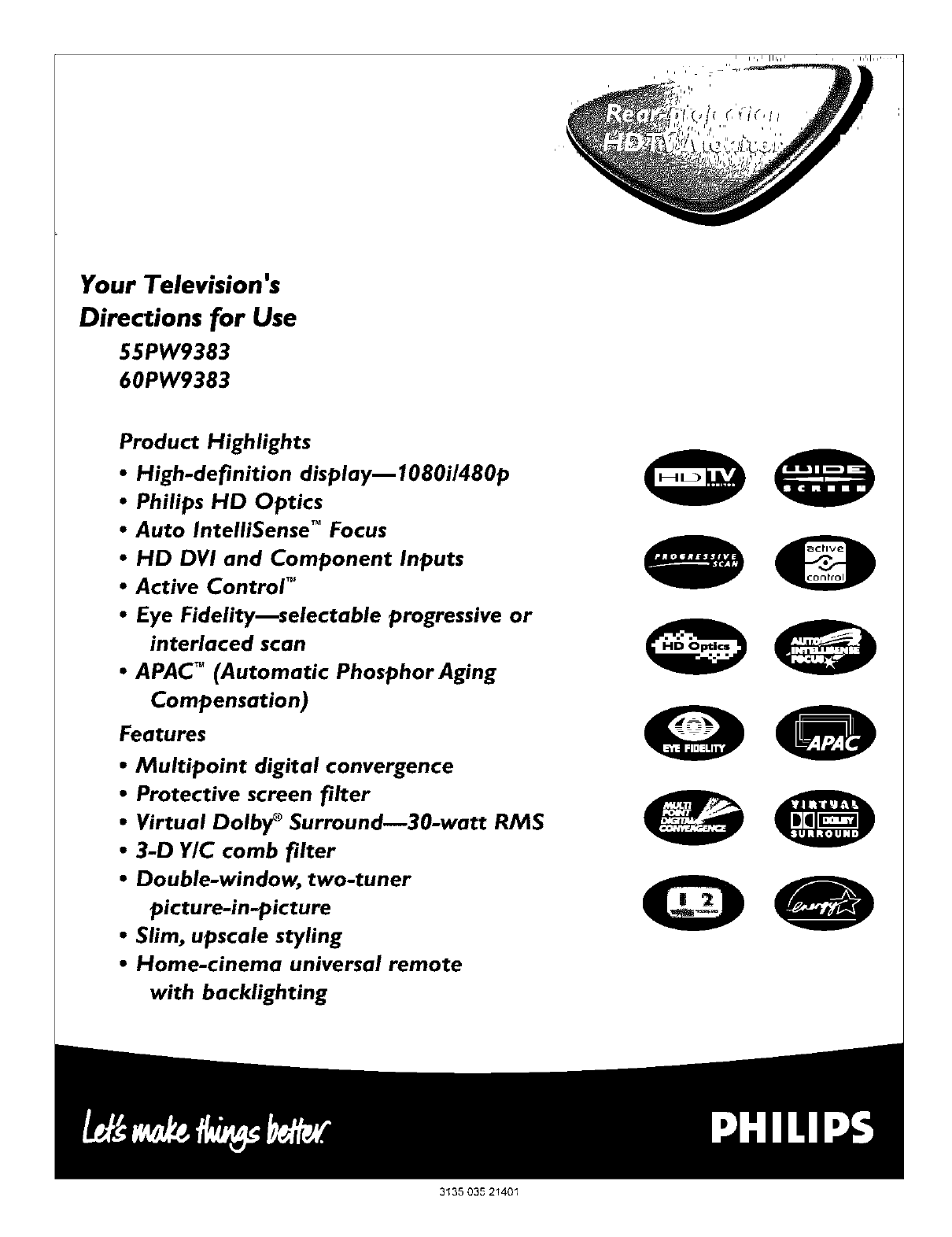 User Manual: Magnavox 60PW9383 60PW9383 MAGNAVOX PROJECTION TV - Manuals and Guides View the owners manual for your MAGNAVOX PROJECTION TV #60PW9383. Home:Electronics Parts:Magnavox Parts:Magnavox PROJECTION TV Manual