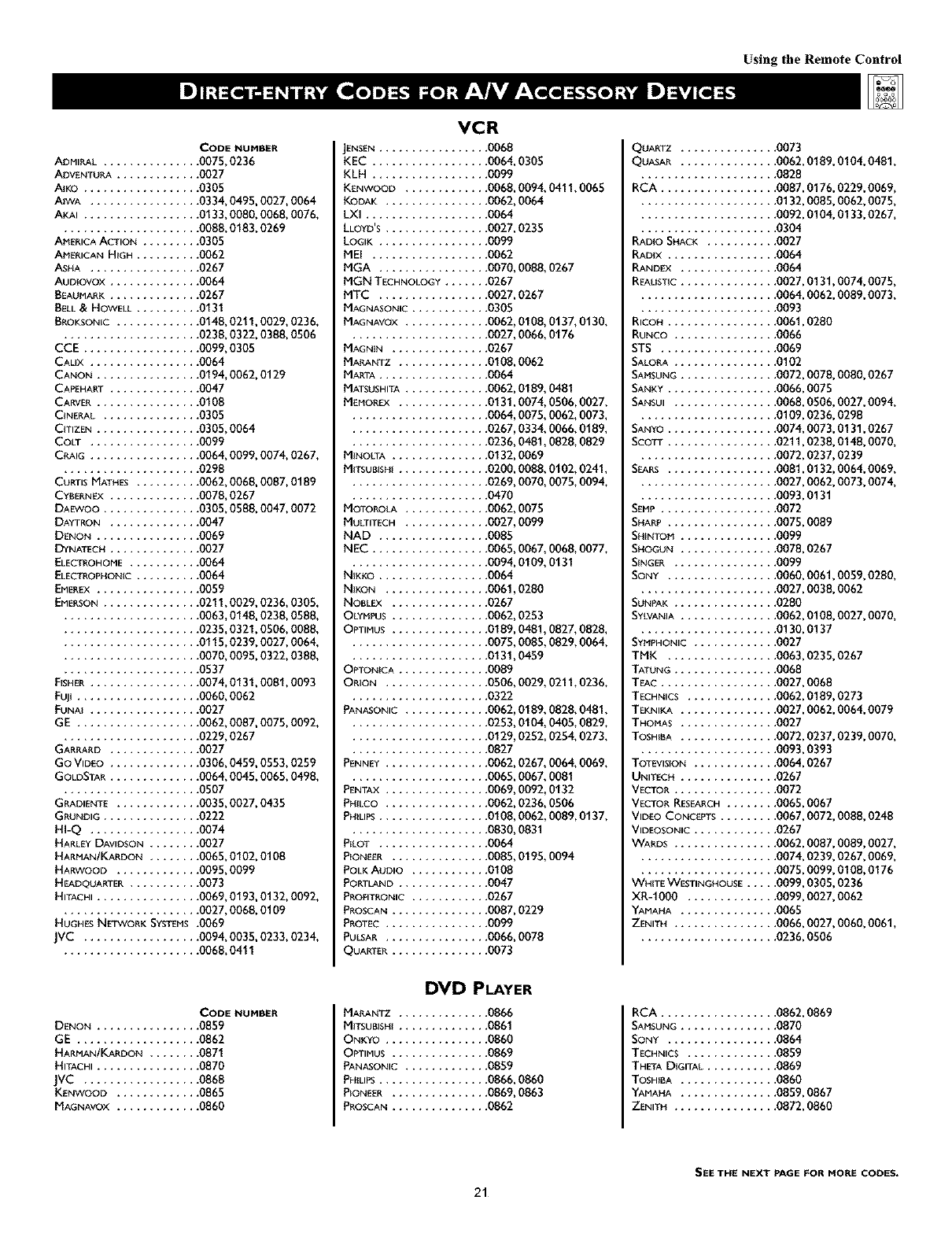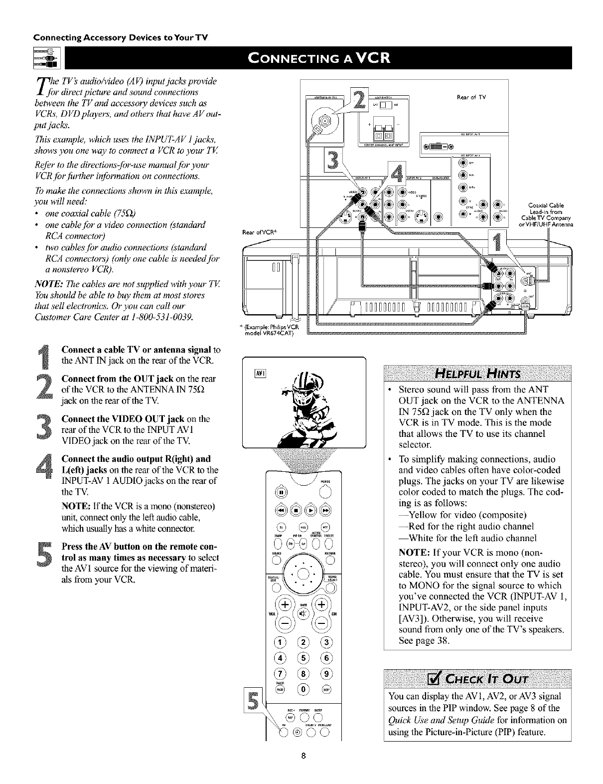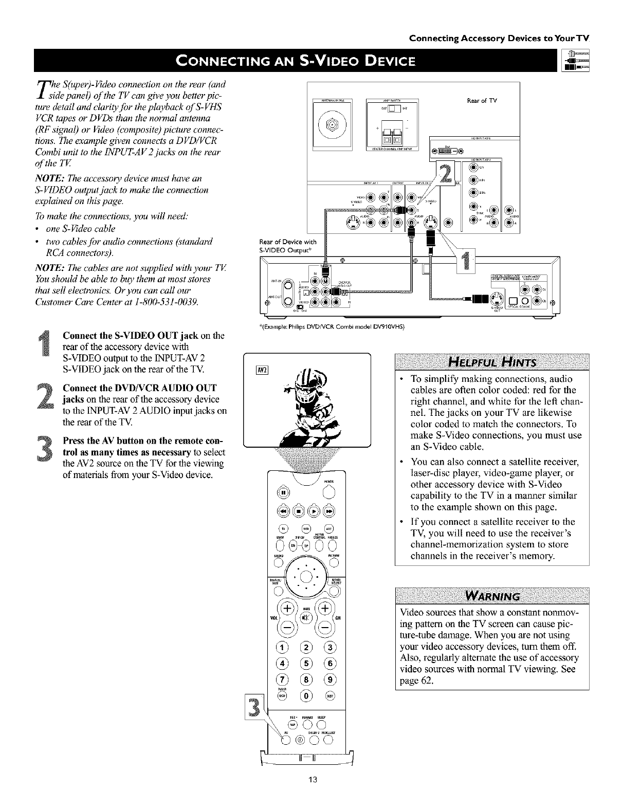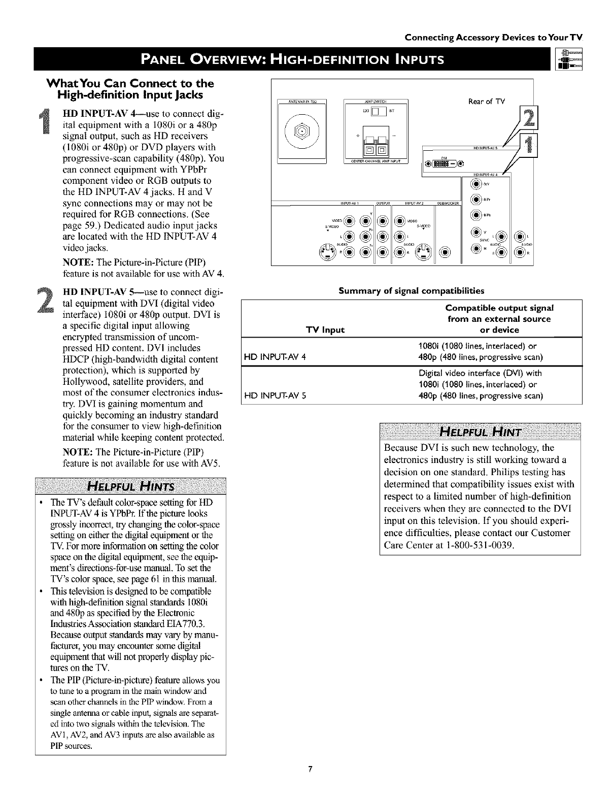 tion on connecting accessory devices to the AV intmts, see the