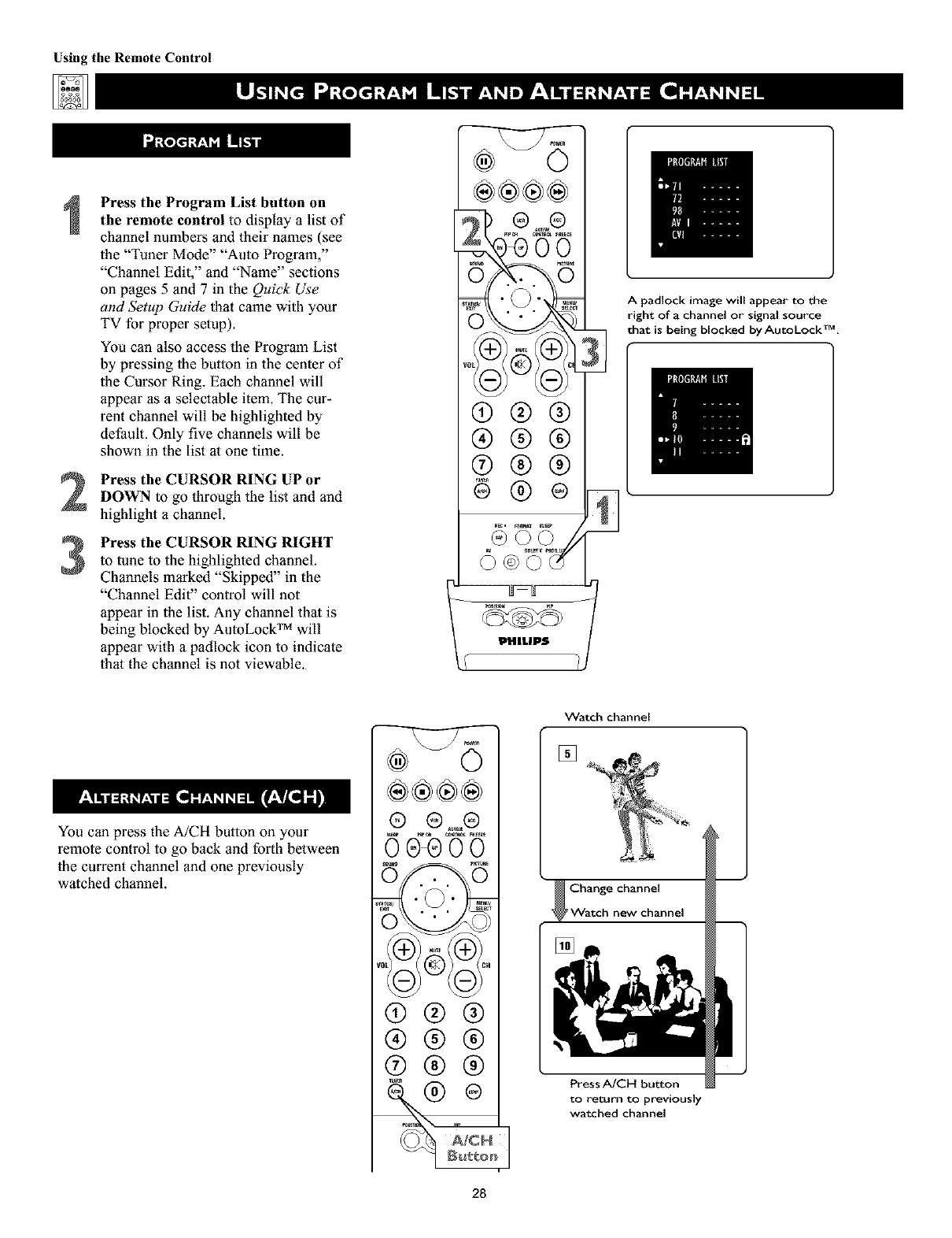 the PIP CH(annel) DN/UP buttons.