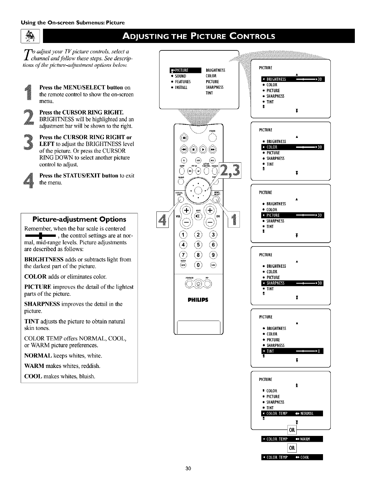 PICTURE submenu. See