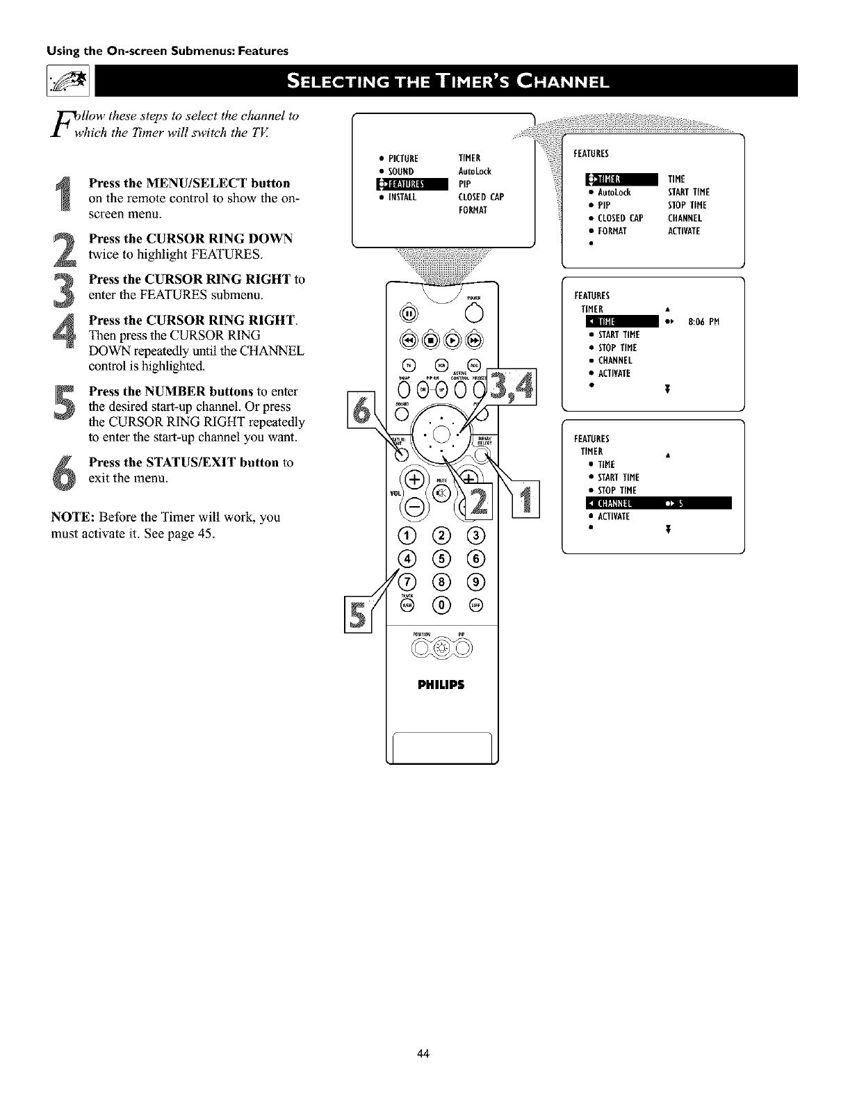 if you press and hold the PIP CH UP button for three sec-
