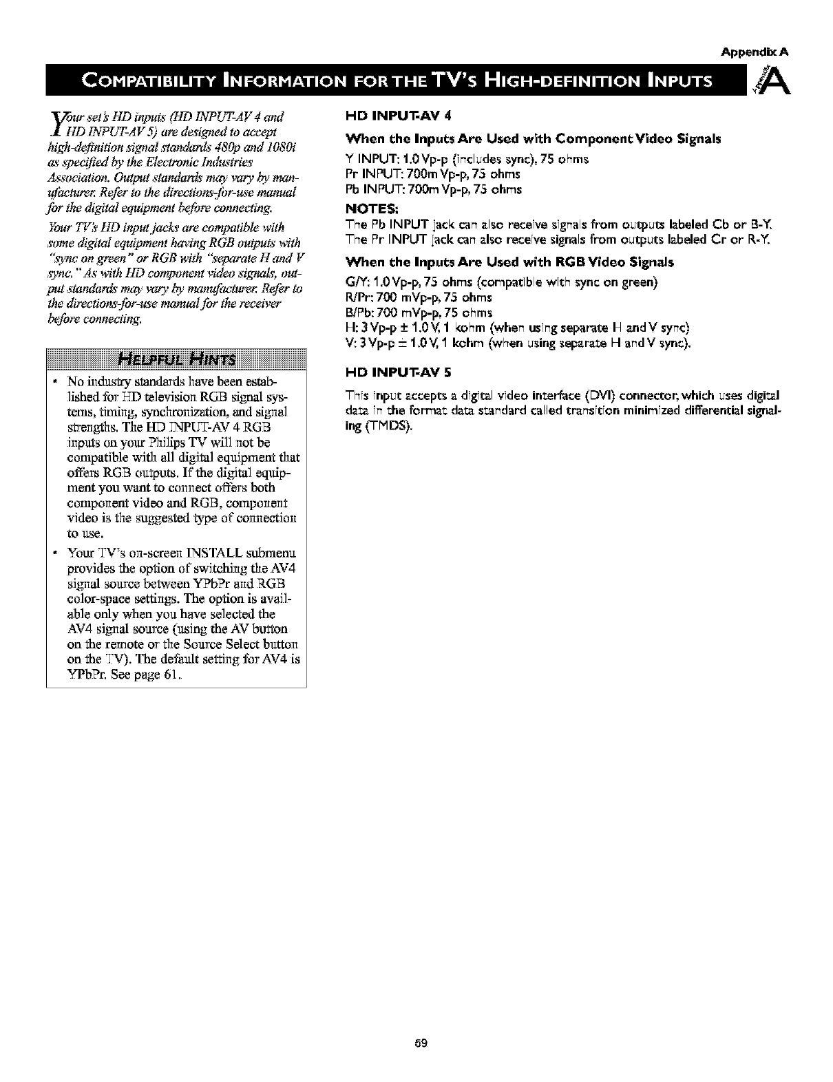 •HD DVI and Component Inputs