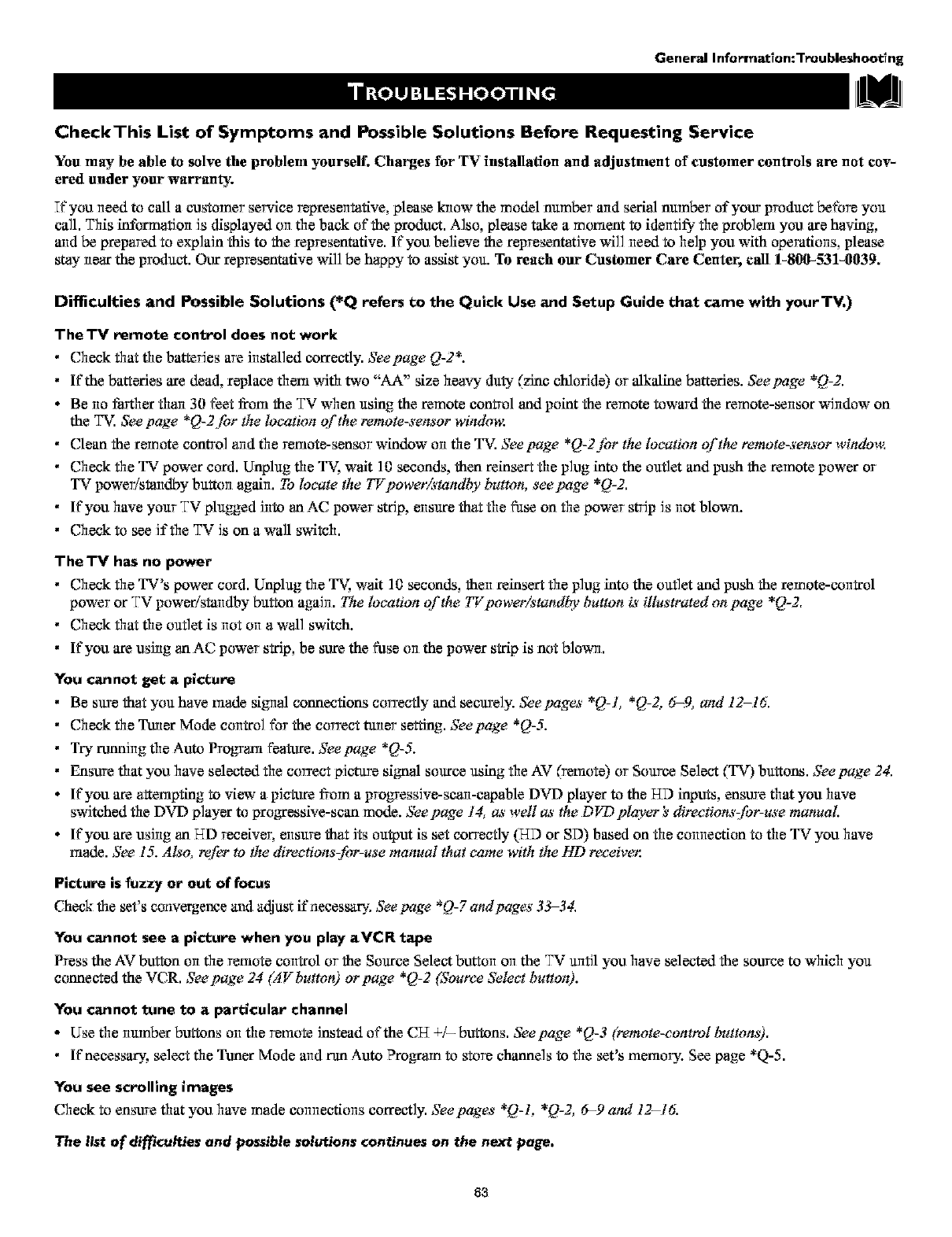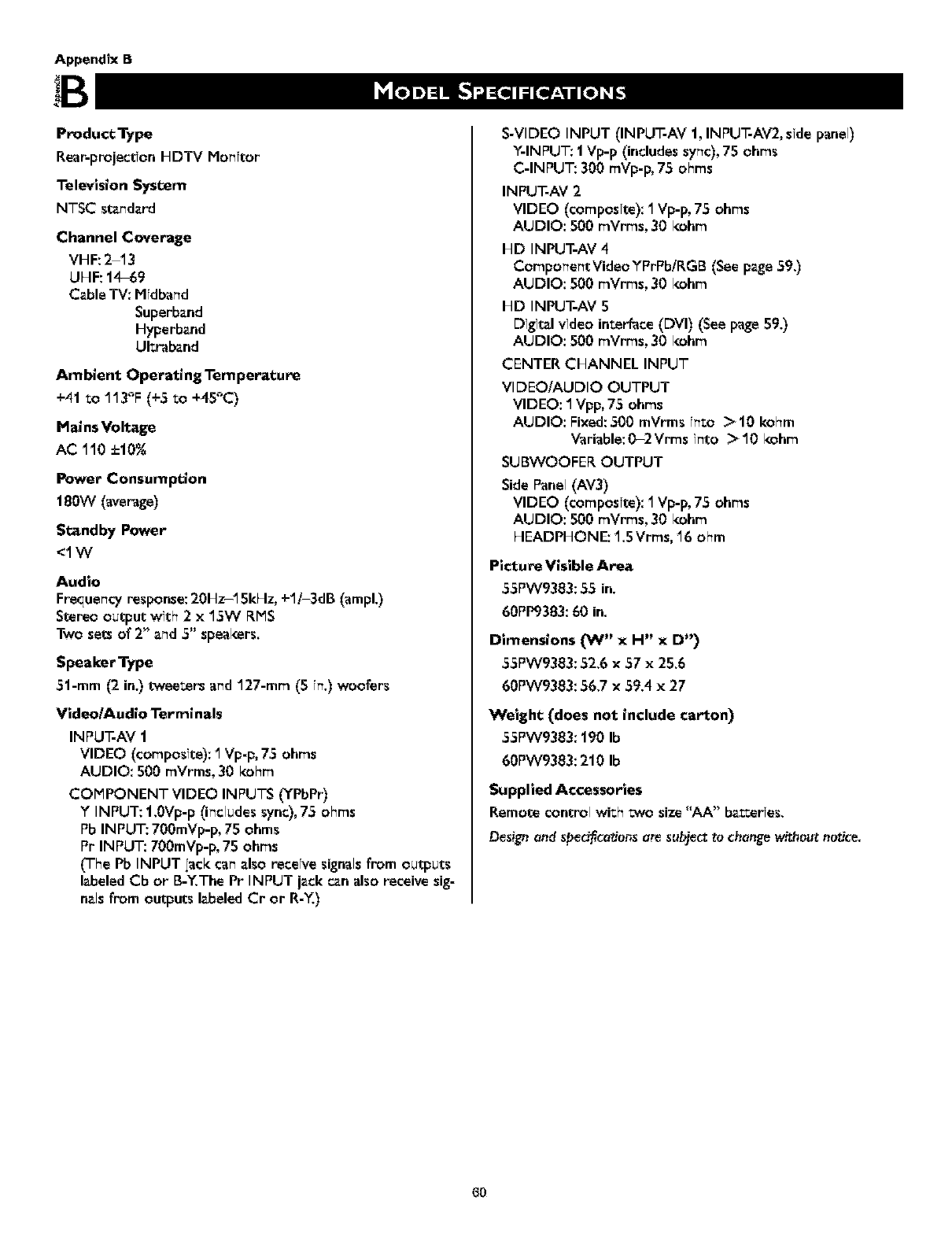 Magnavox 60PW9383 User Manual PROJECTION TV Manuals And Guides L0303143