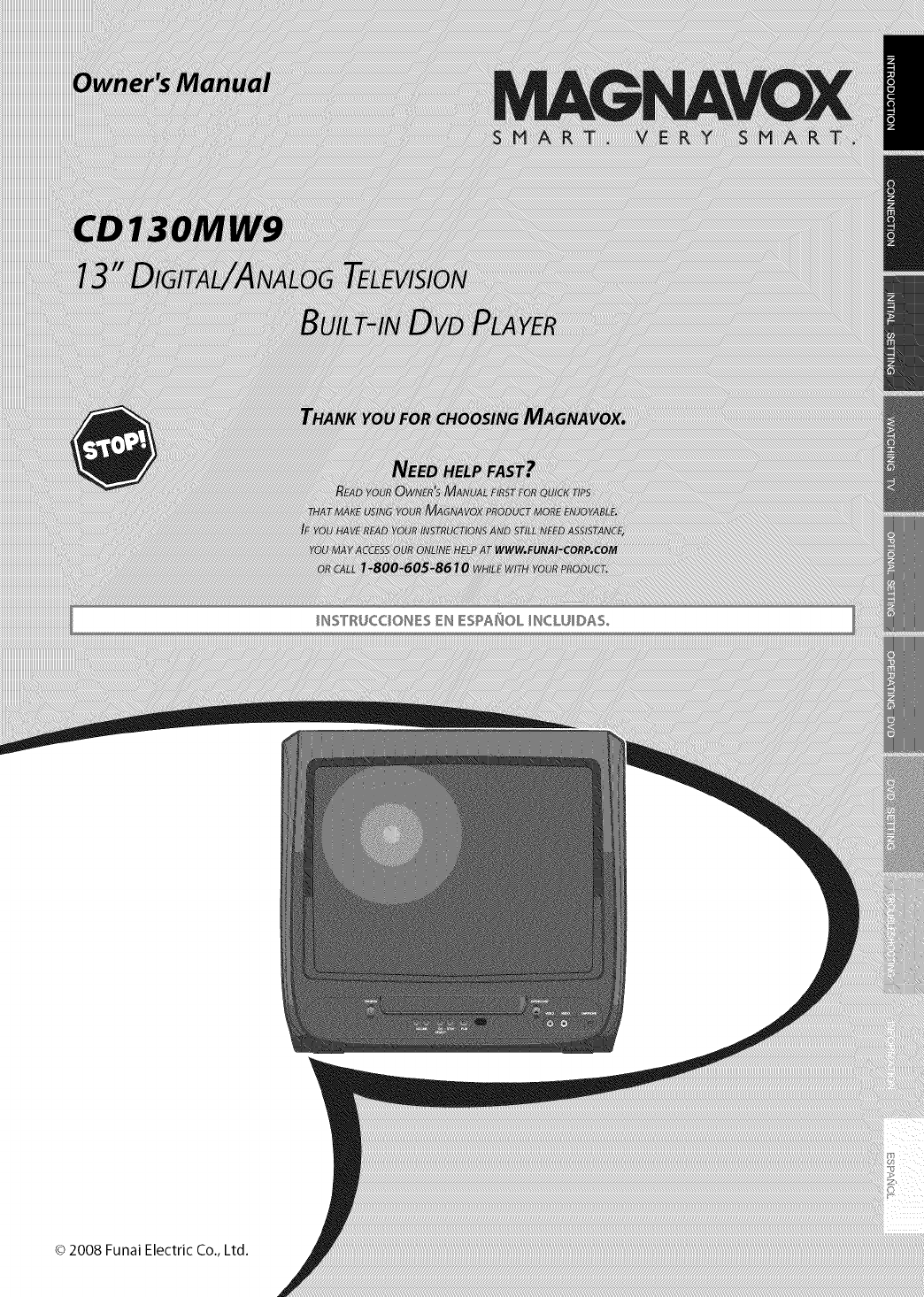Magnavox CD130MW9 User Manual TELEVISION/DVD Manuals And Guides L0909371