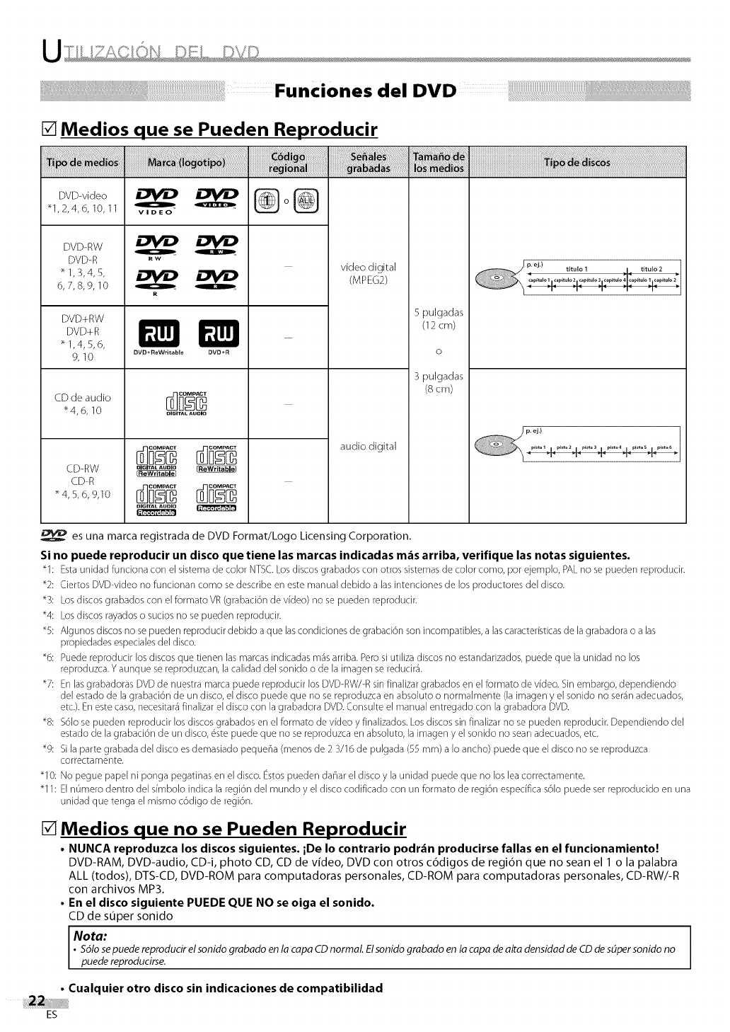 DVD (sonido lineal):20 Hza 20 kHz(frecueuciade muestreo:48 kHz)