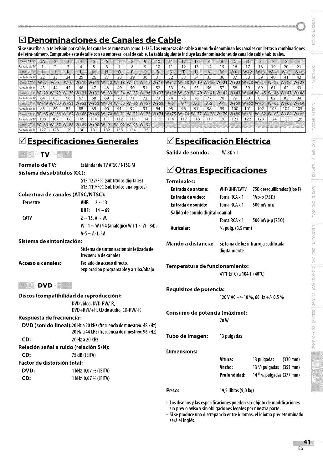 Entradade antena: VHF/UHF/CAI"V75Qdesequilibrados(tipoF) i !i:il