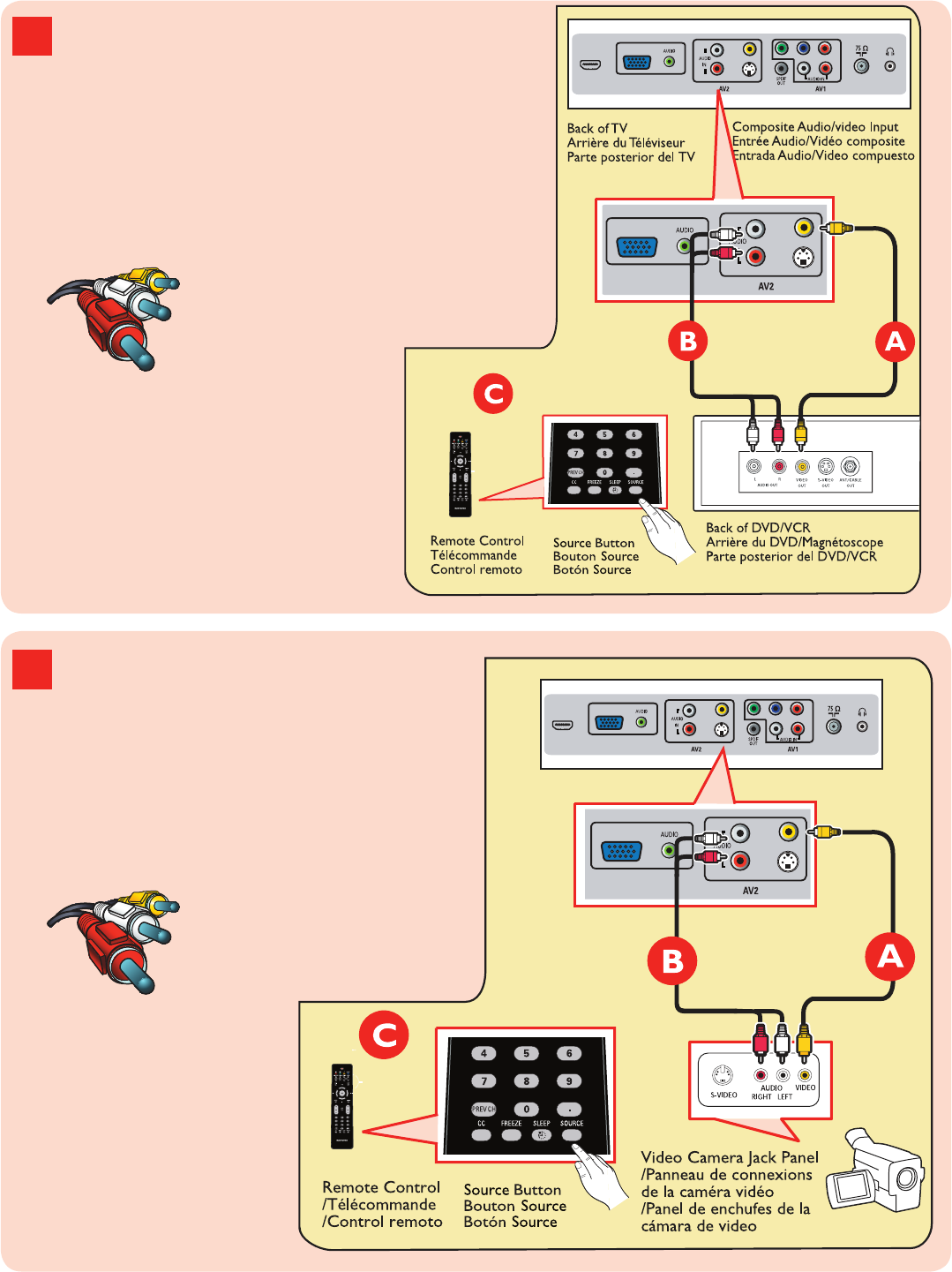 Câbles vidéo (jaune) et audio