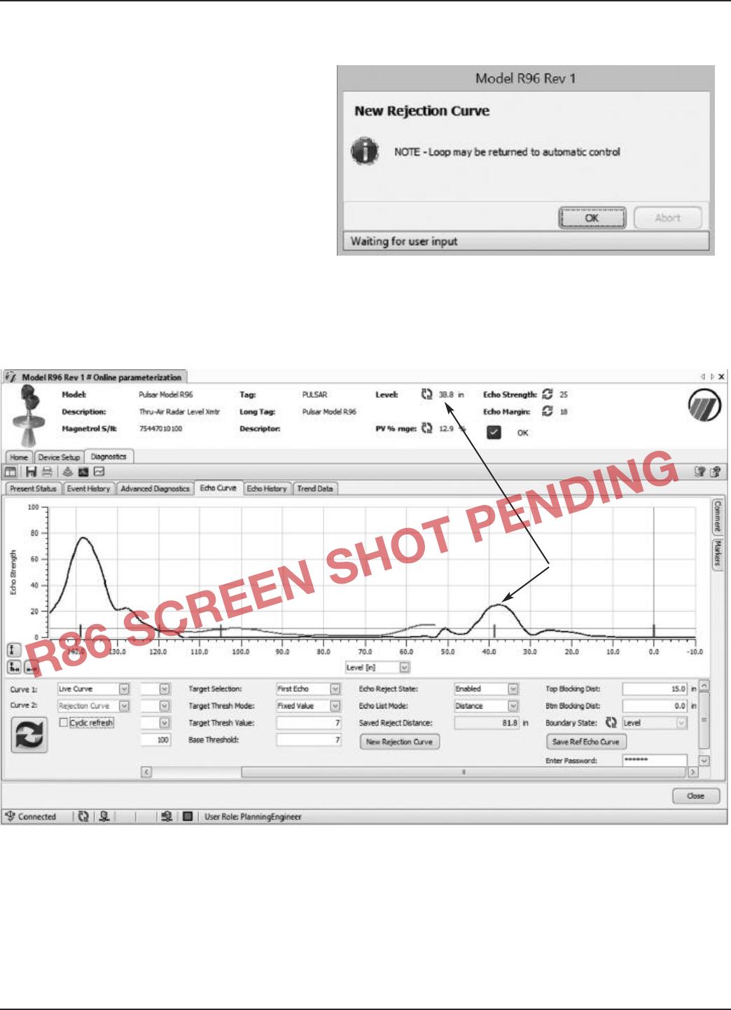 26 Echo Rejection Invalid Previously stored Echo Rejection Curve invalidated by parameter change