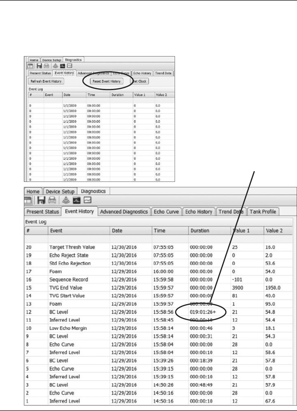 14 No Echoes Echo from upper surface missing for longer than Echo Loss Delay