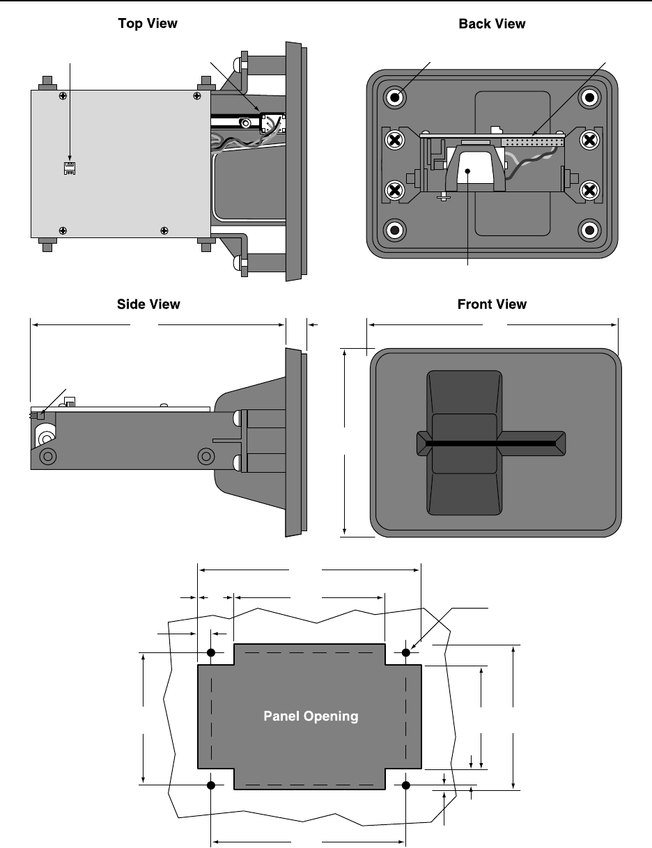 the panel opening. Four screws that mount the Bezel to the panel are size 6-32. The length of
