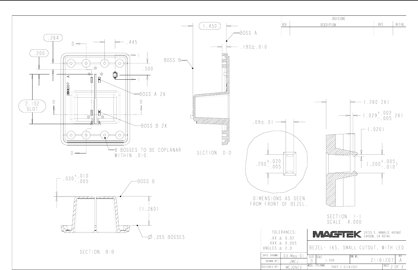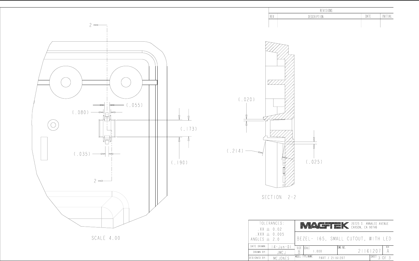 Figures B-4 and B-5 show the dimensions of the bezel in case a different bezel is required.