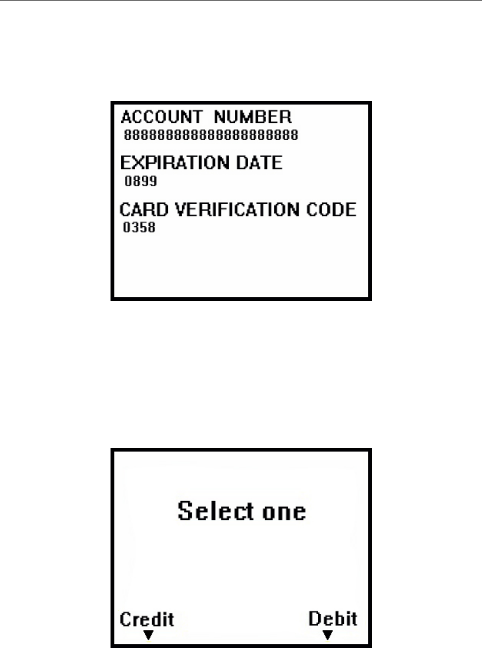 key if the card is a Credit card or to press the Right function key if the card is a Debit card: