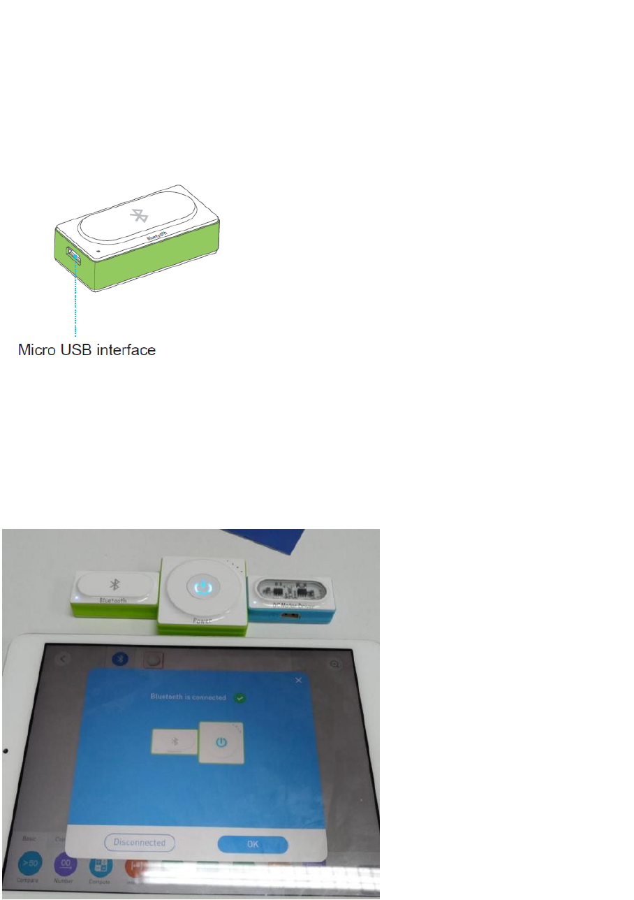 You can power the Bluetooth block by Micro USB interface by connecting to