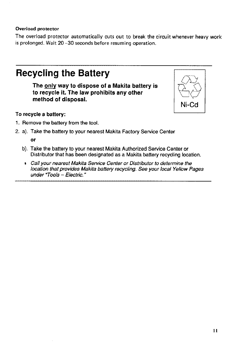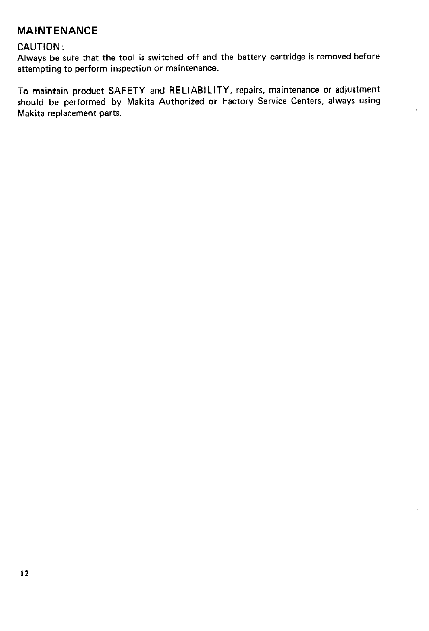 tool, freight prepaid, to one of Makita's Factory or Authorized Service Centers. If inspection shows