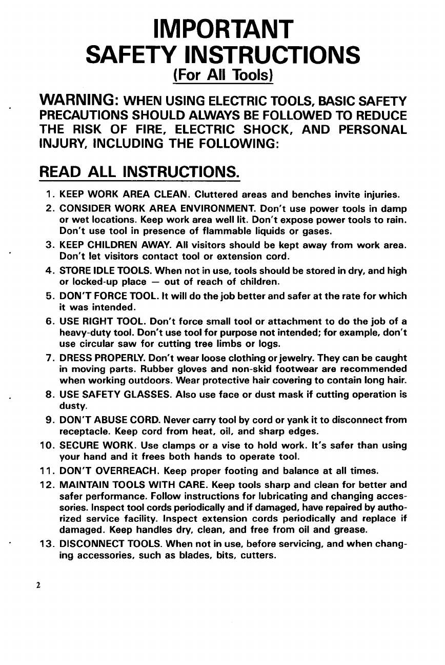 WHEN USING ELECTRIC TOOLS, BASIC SAFETY