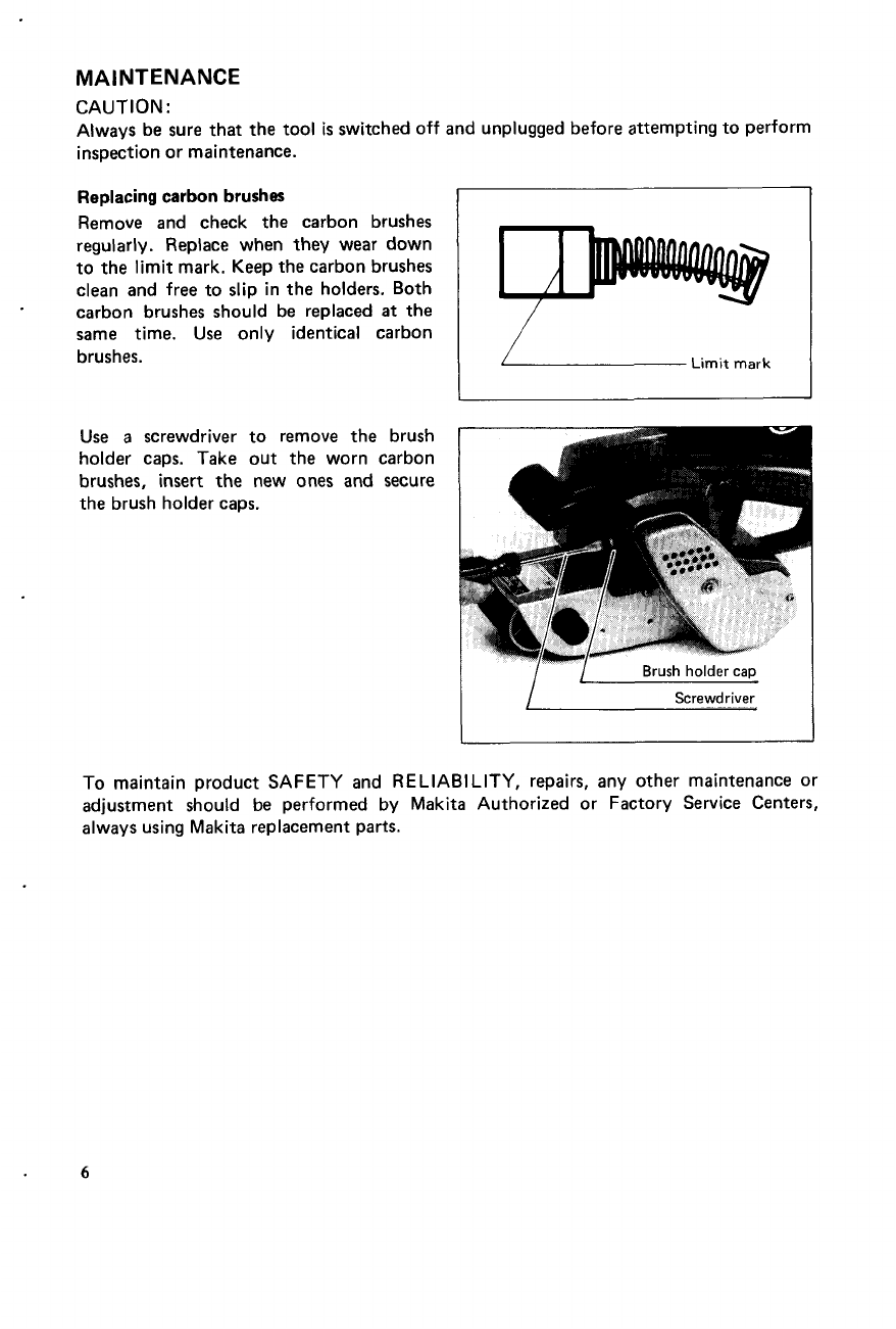 tool, freight prepaid, to one of Makita’s Factory or Authorized Service Centers. If inspection shows
