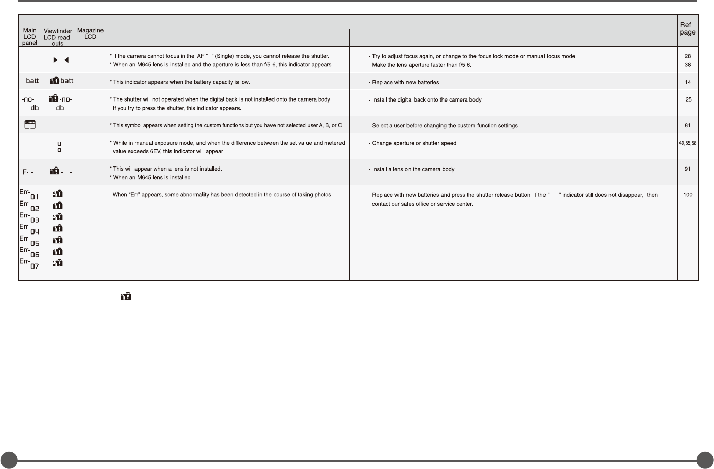 • Prolonged disuse shortens camera life. Periodically exercise the shutter (at different