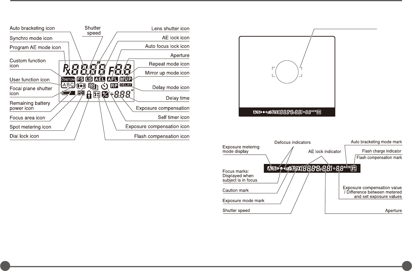 shutter mode icon, AE lock icon, auto focus lock icon, mirror up icon,