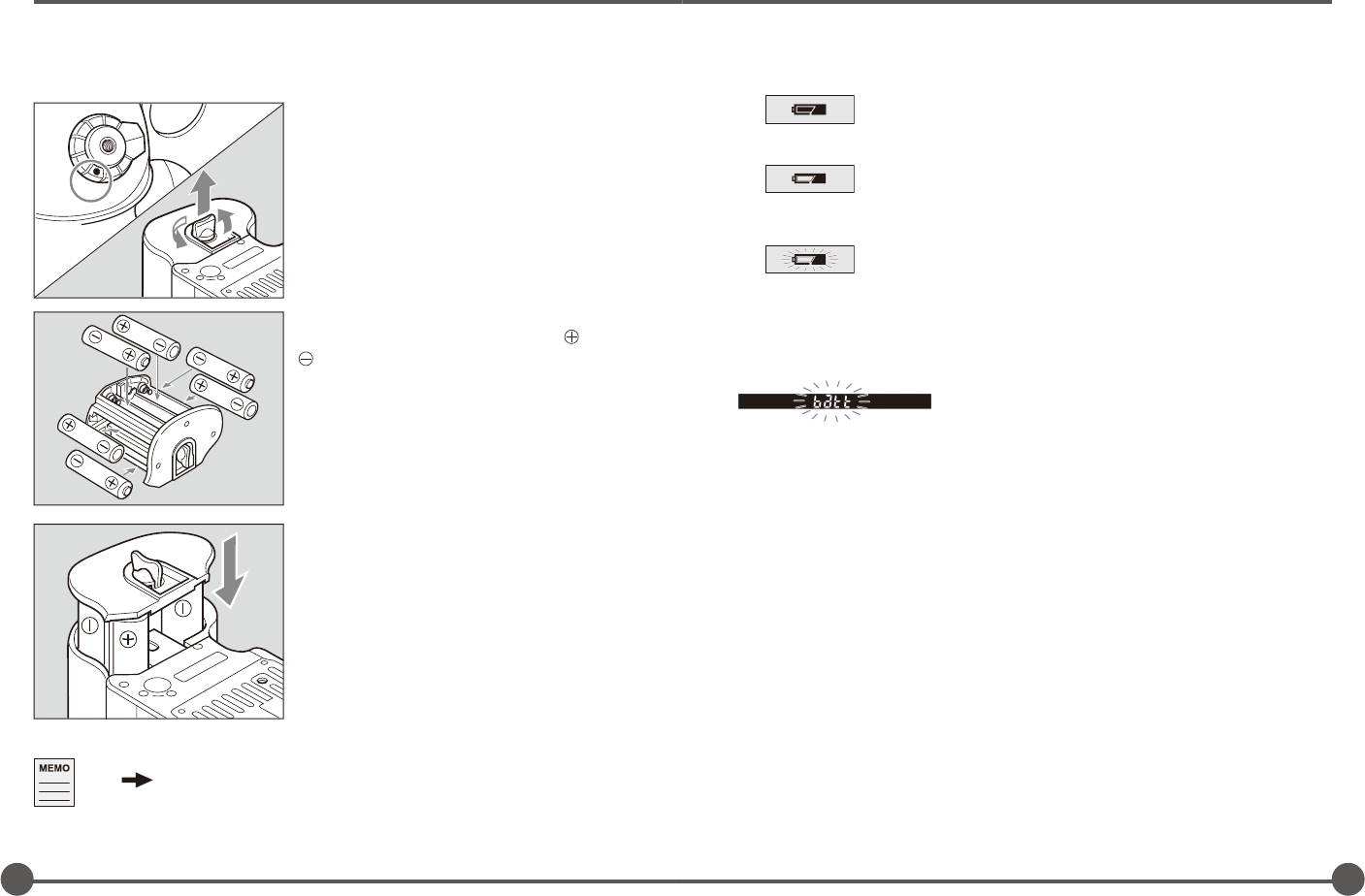 • Be sure to wipe battery contacts before installation and watch correct polarity.