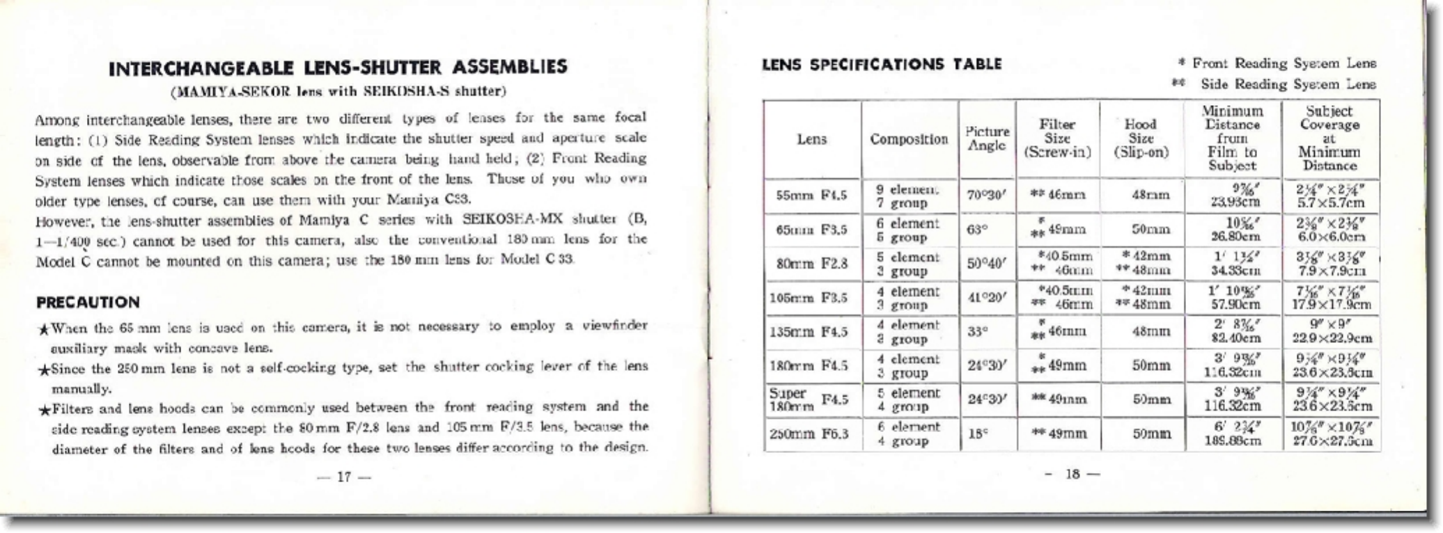 Mamiya C33 Professional Owners Manual