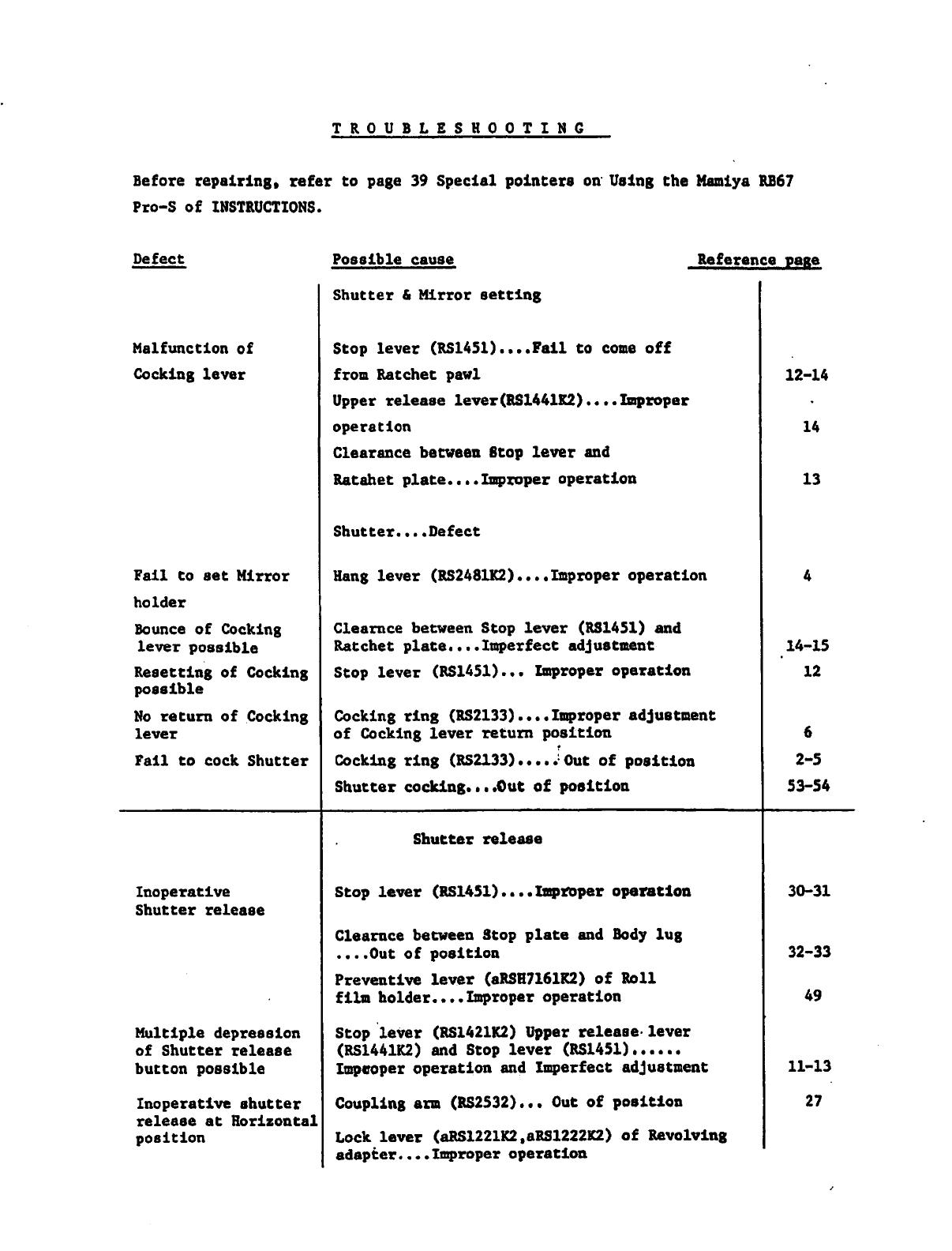 RB67 Pro-S - Repair Manual Mmy_RB67_Pro_S_RM Free User Guide for Mamiya Camera, Manual