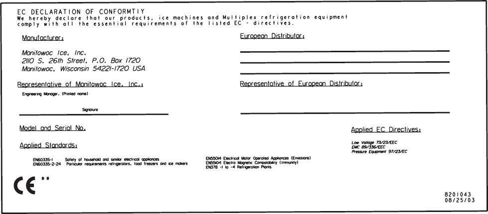 Manitowoc Cleaner and Sanitizer . . . . . . . . . . . . . . . . . . . . . . . . . . . . . . . . 1-1