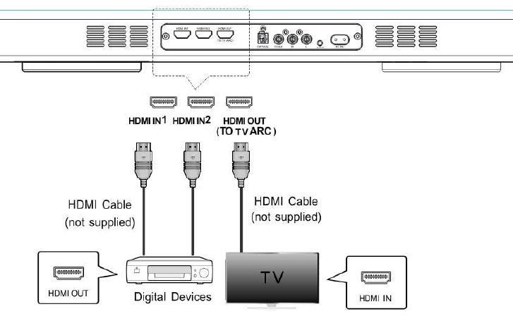 1. Ensure that the unit is well connected to the TV or other audio device via the
