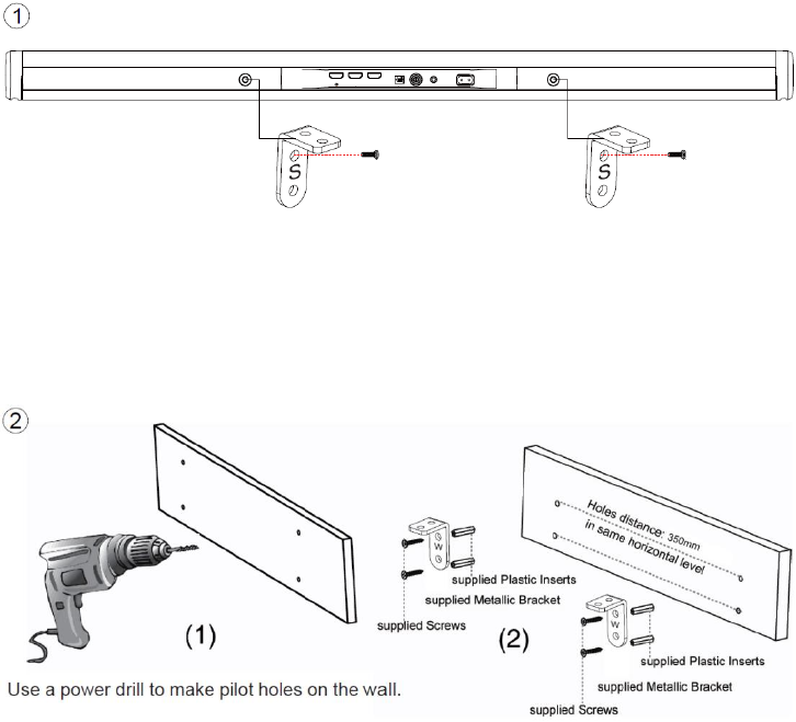 Place the Sound bar with wall-mounting brackets (marked with “S” symbol)