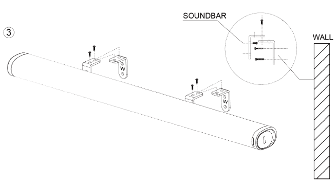 bracket fixing holes on the back of the Sound bar with the supplied short