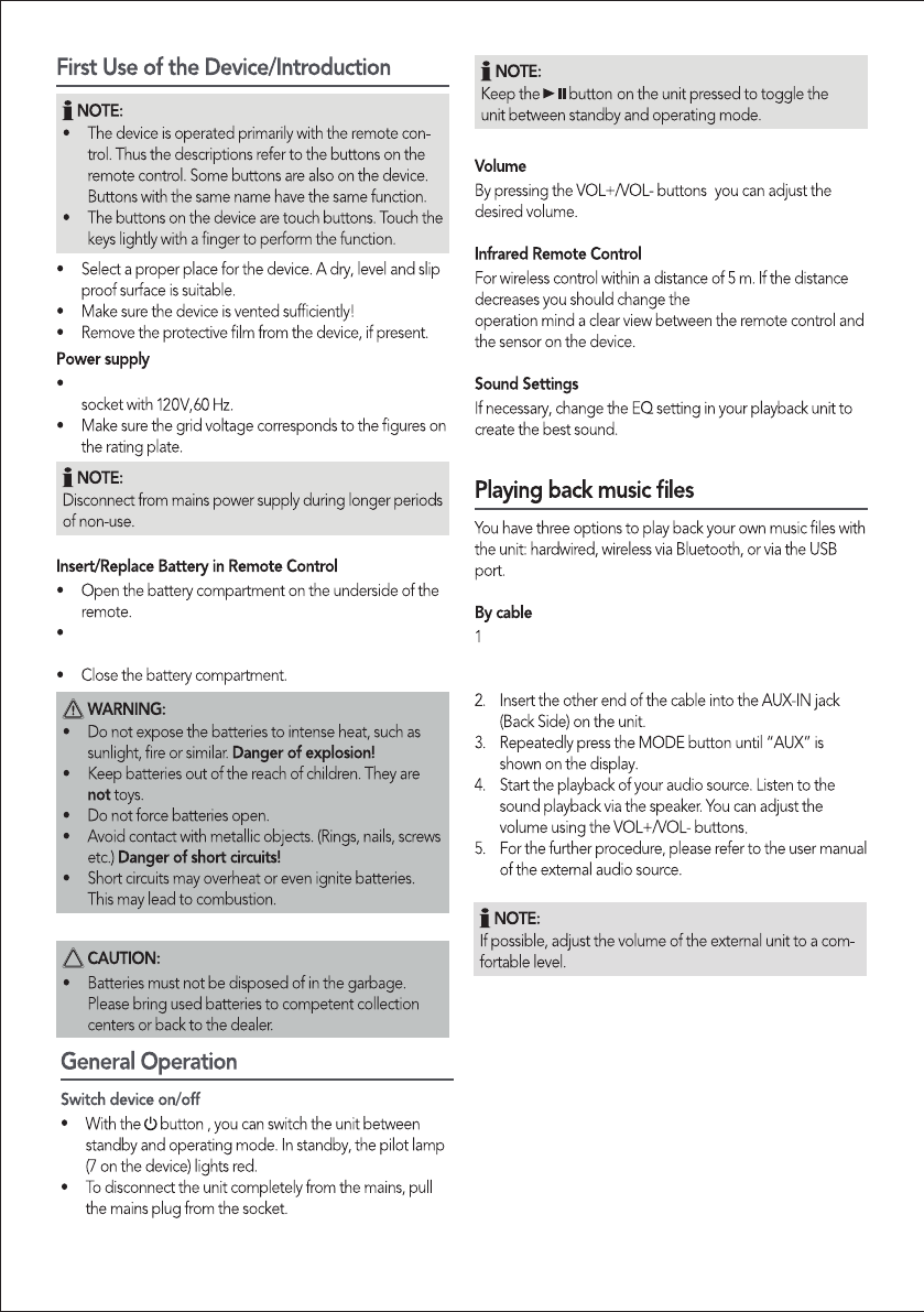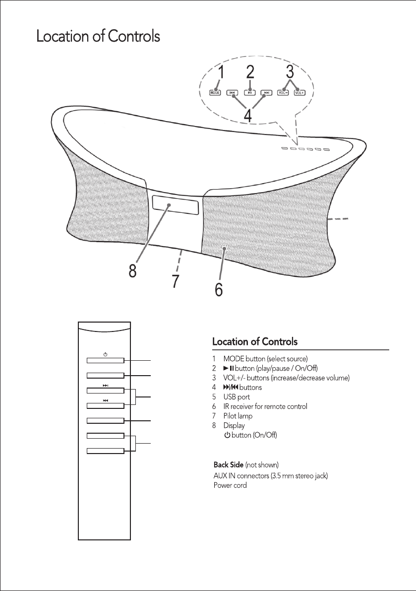 Power of Remote control 3V( 2x 1.5V “AAA”UM-4) Batteries