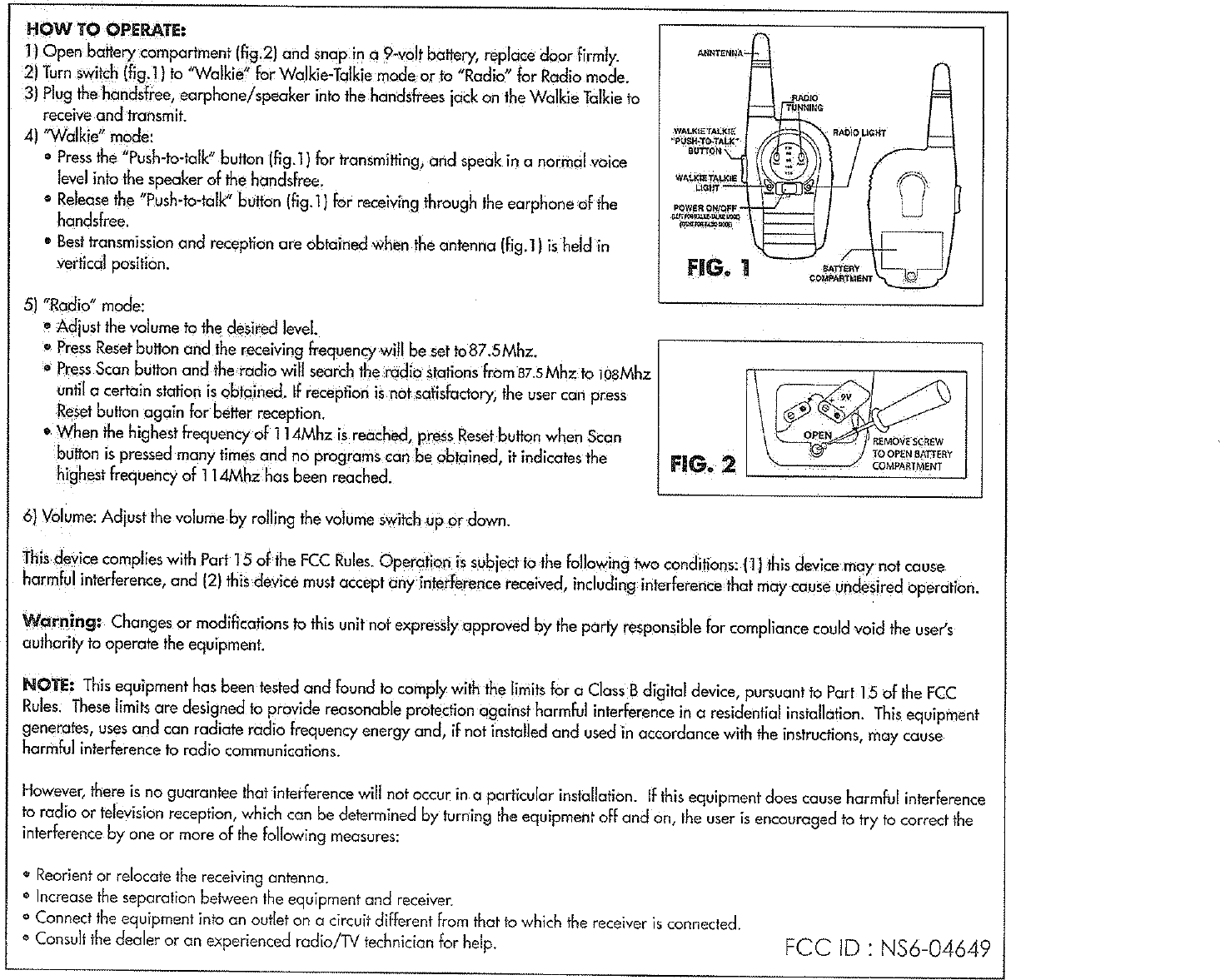 Manley Toys 04649 Walkie Talkie with FM Radio User Manual
