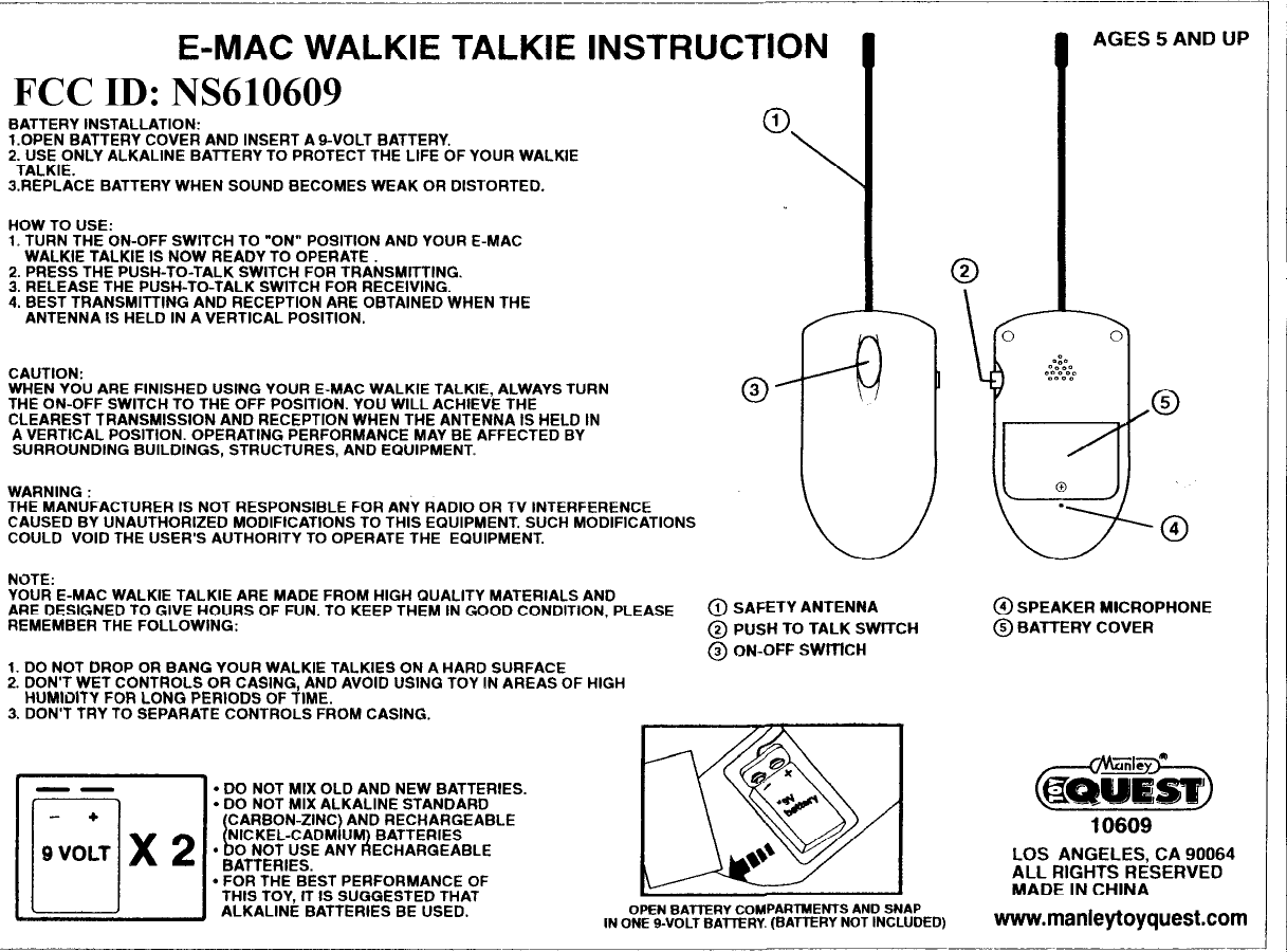 Manley Toys 10609 WALKIE TALKIE User Manual Unknown