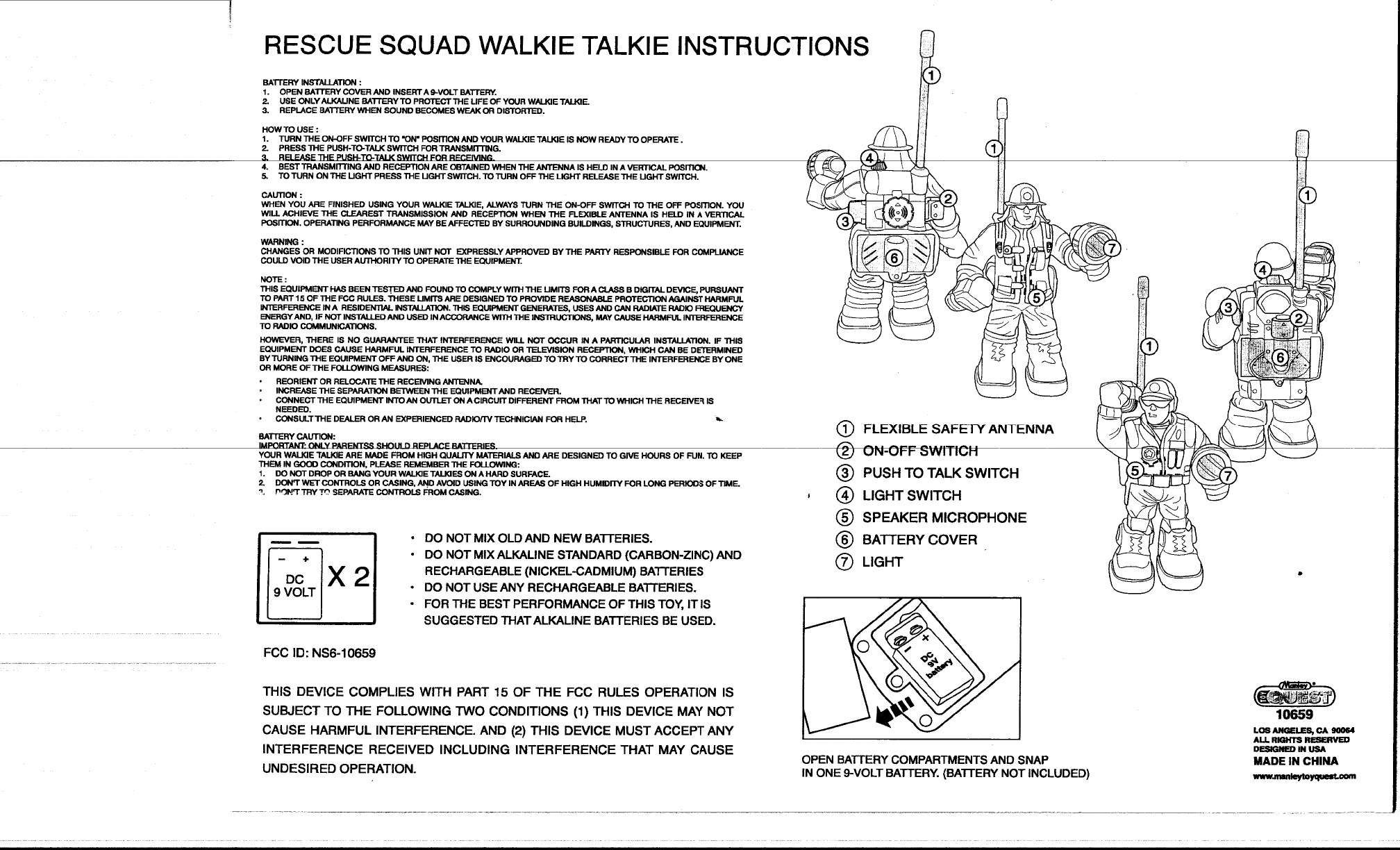 Manley Toys 10659-2 Walkie - Talkie User Manual Manual