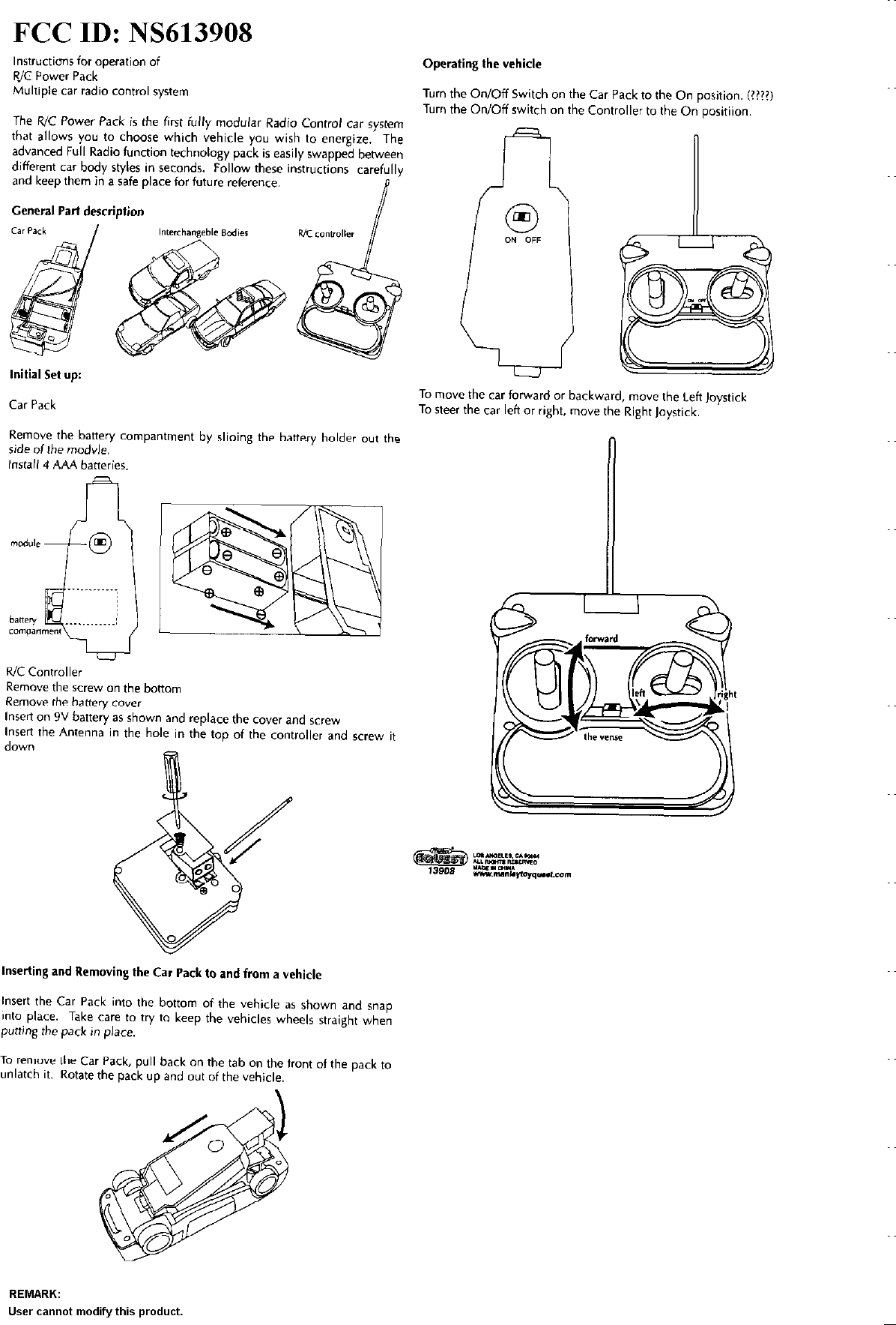 Manley Toys 13908 R/C Pack User Manual Unknown