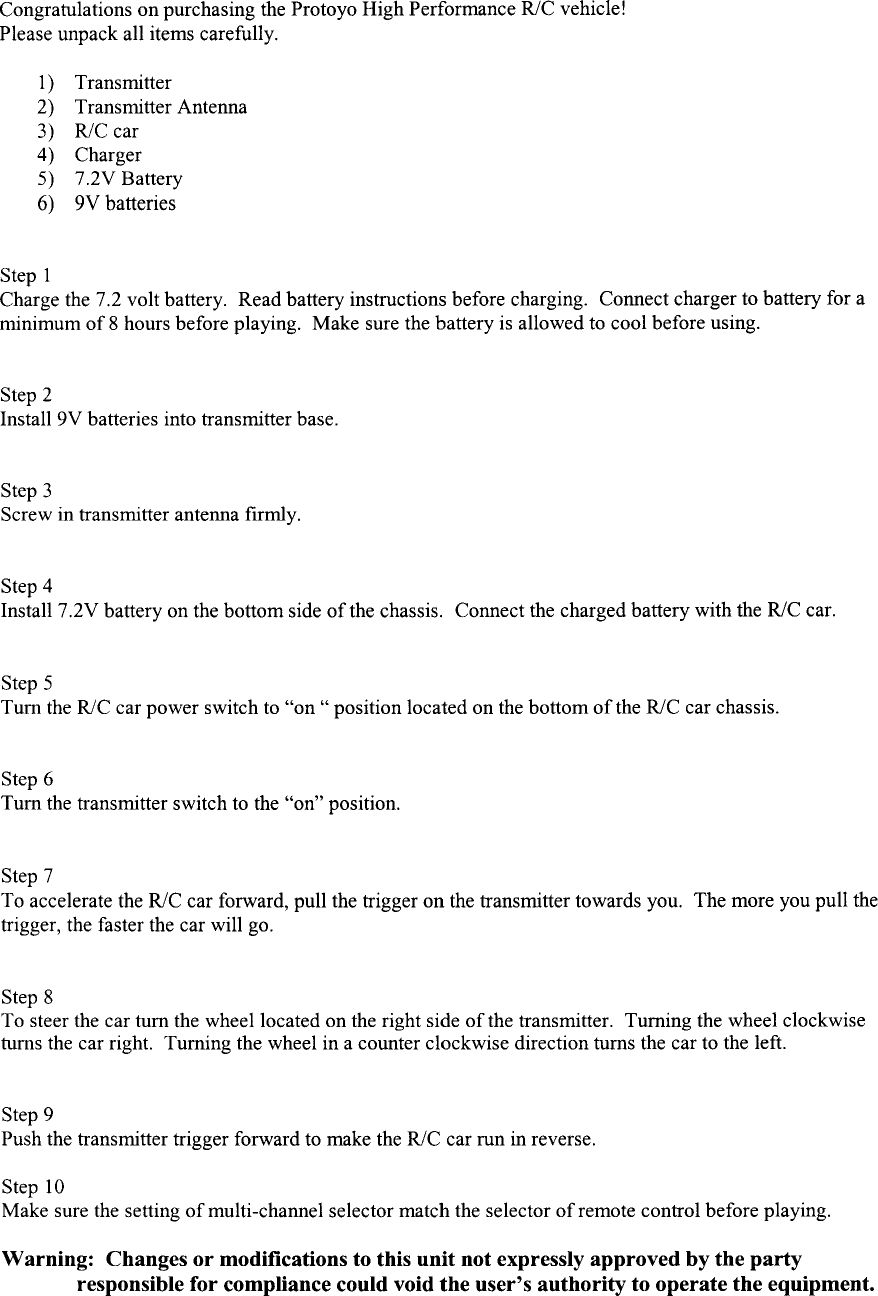 Manley Toys 15106-27 RC Car User Manual