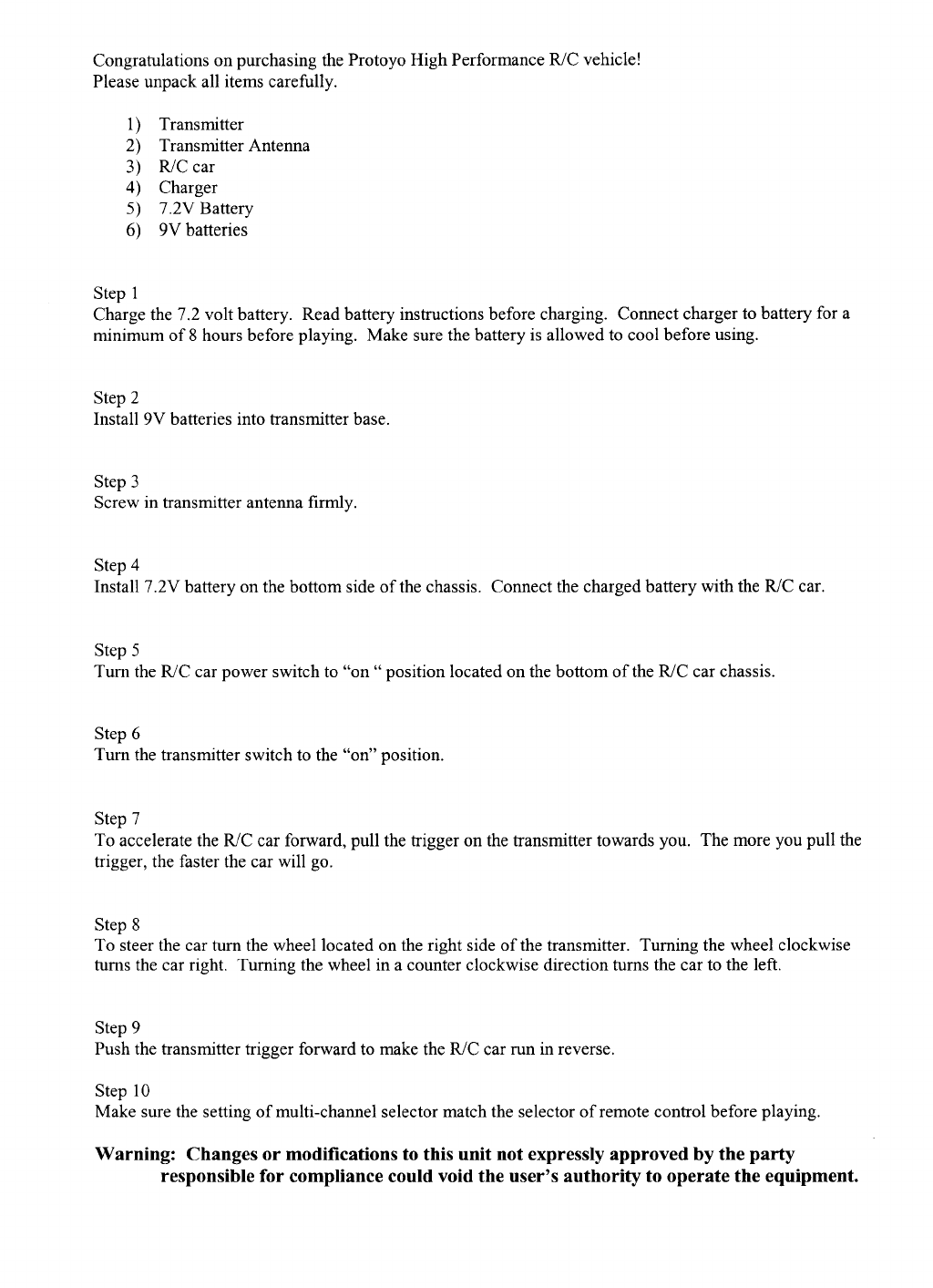 Manley Toys 15106-27 RC Car User Manual