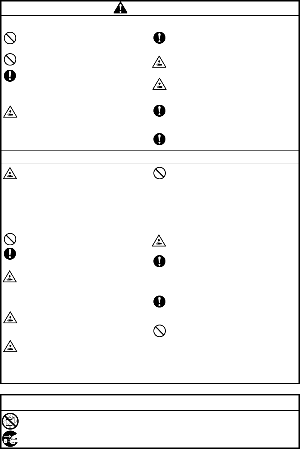 ・・・・・・ This symbol ( ) indicates something that you should be careful of. The picture inside the triangle