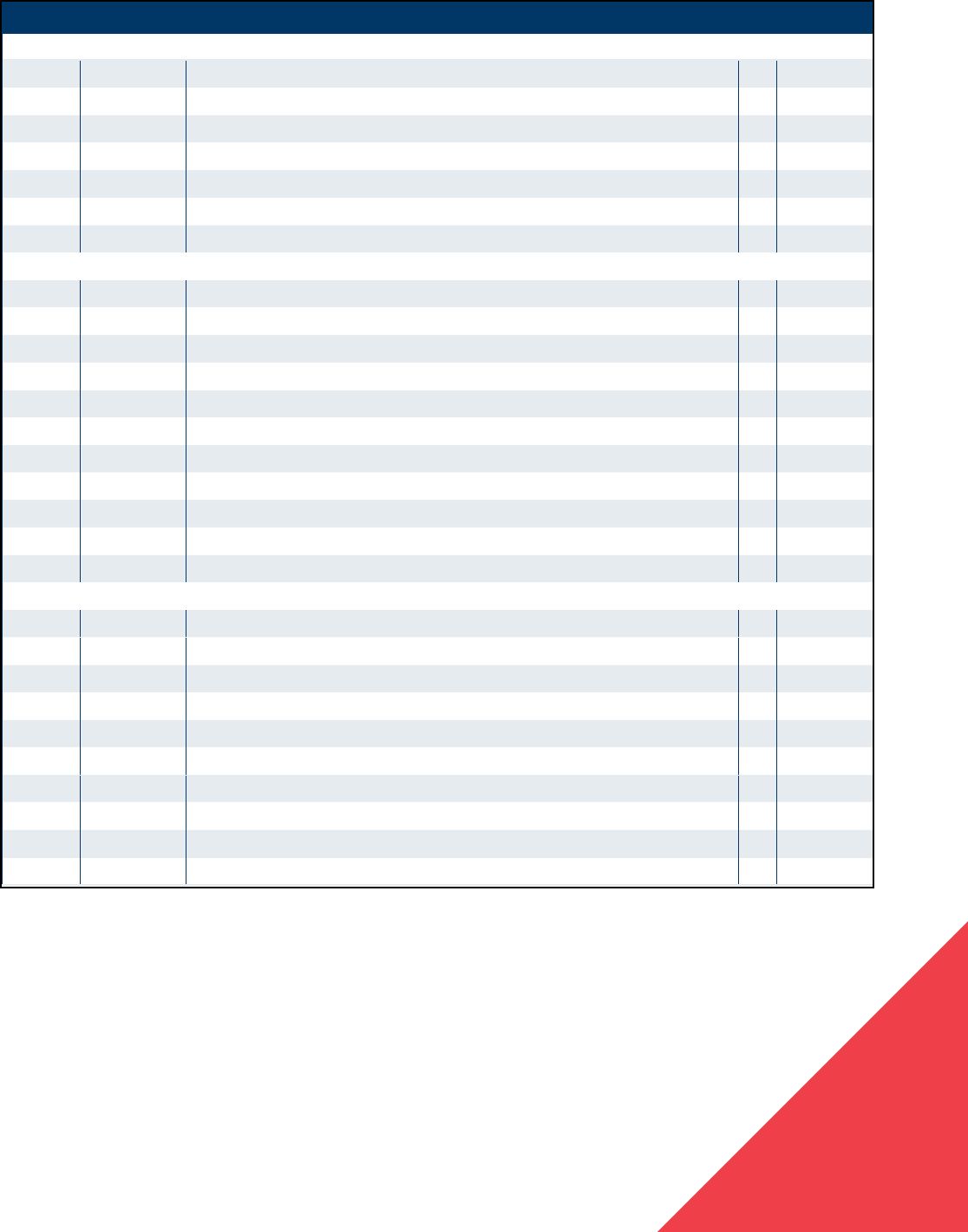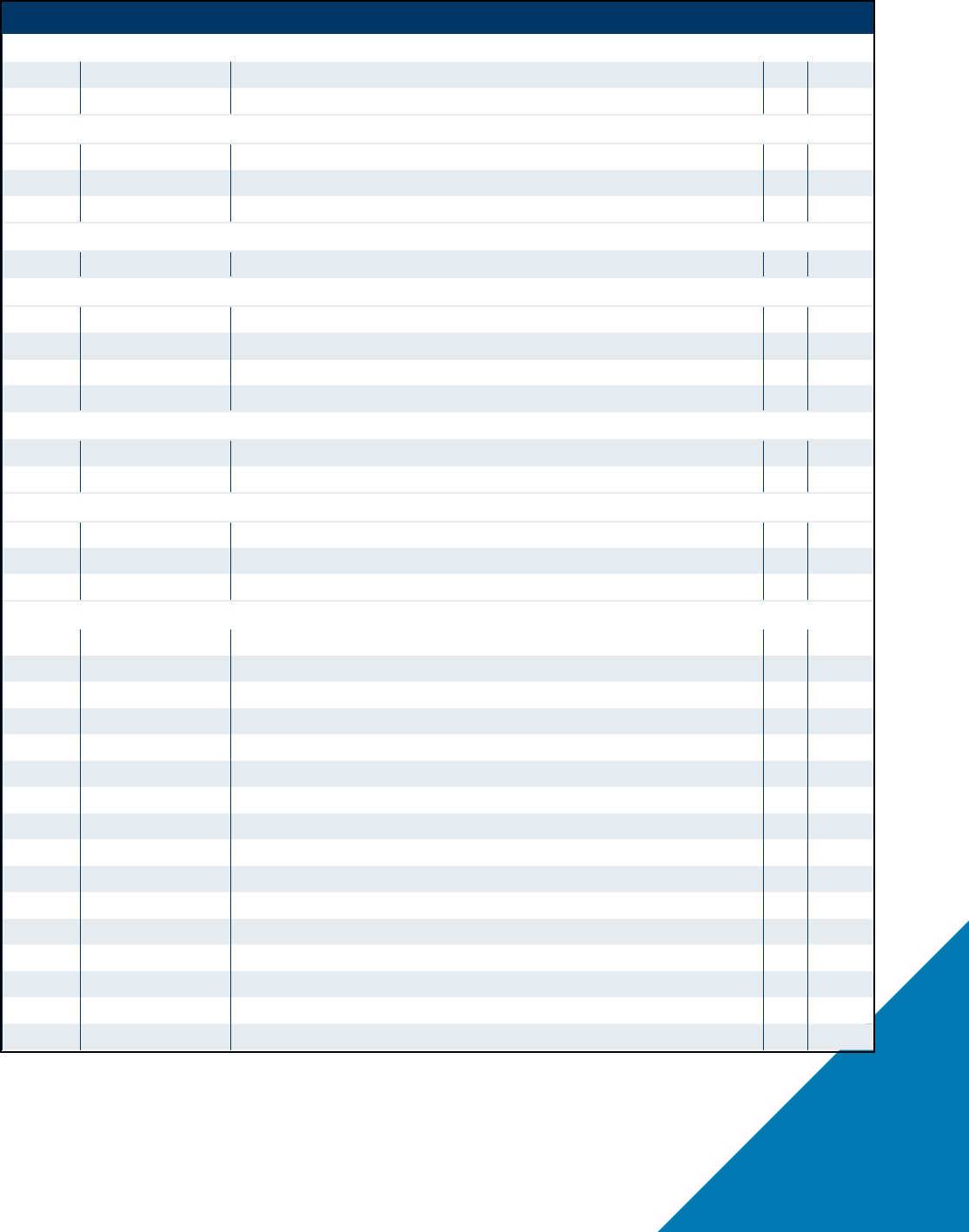 Turn to the category of interest, in the order identified on