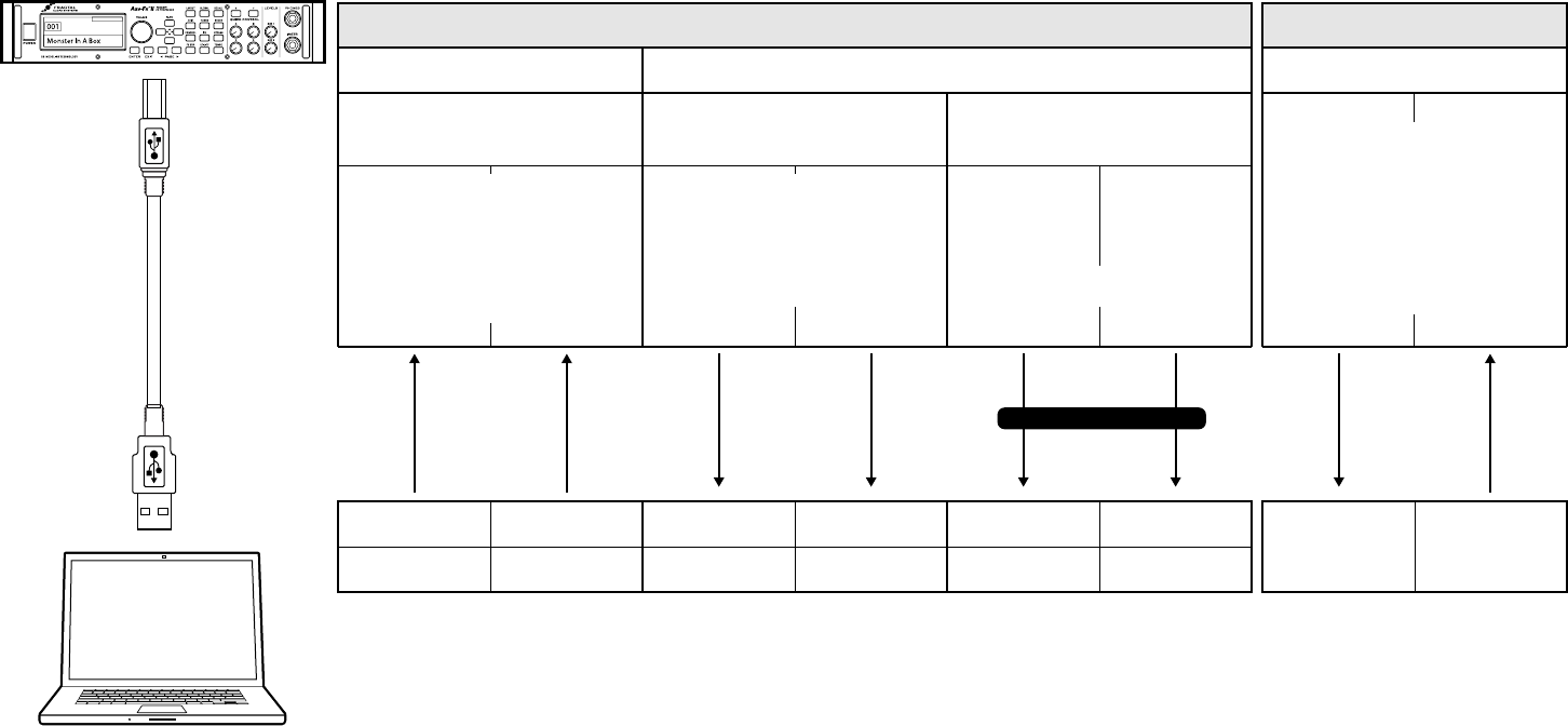 When the I/O:MIDI:USB Adapter Mode parameter is set to “ON,” two things happen: