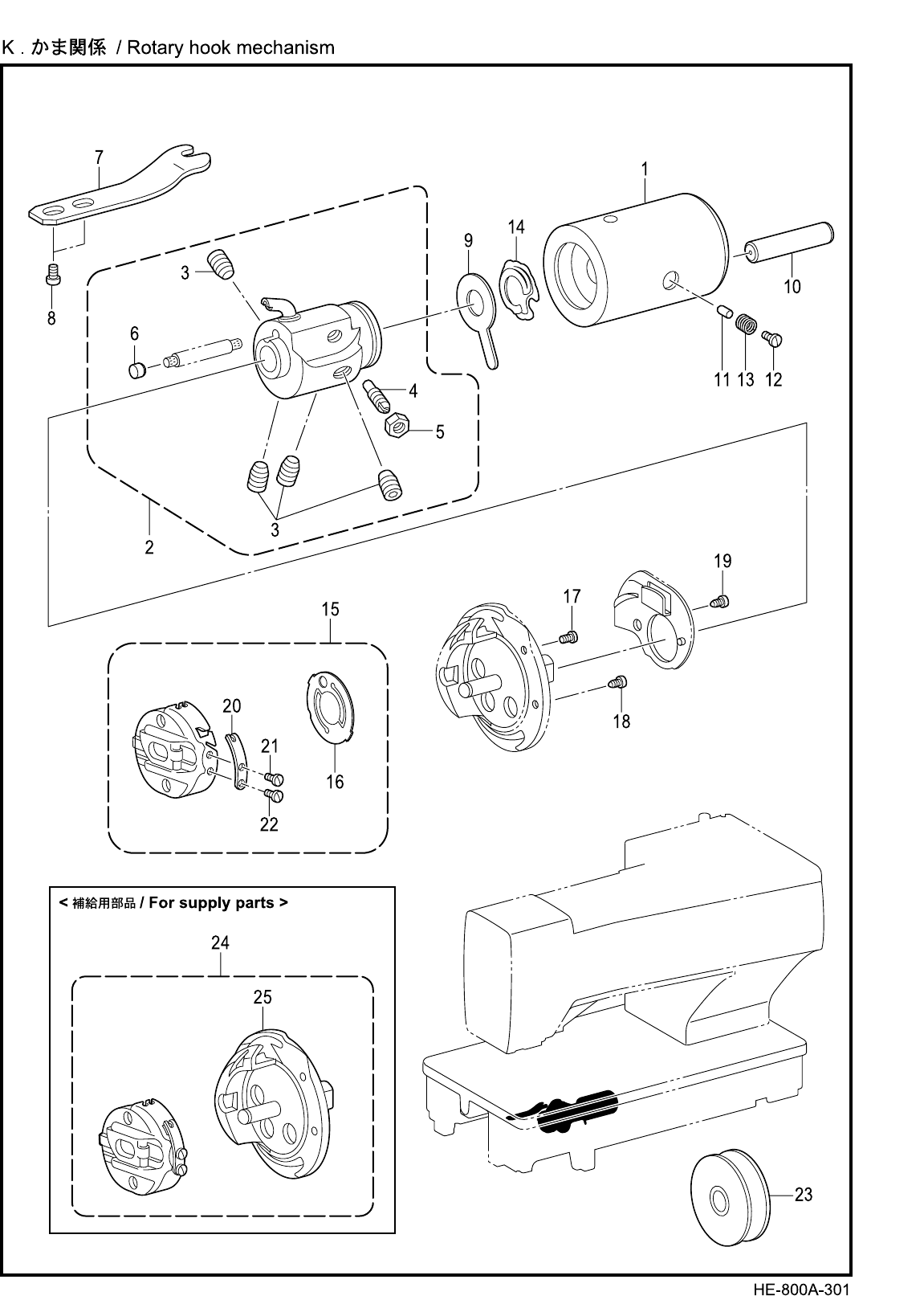 - K. Rotary hook mechanism