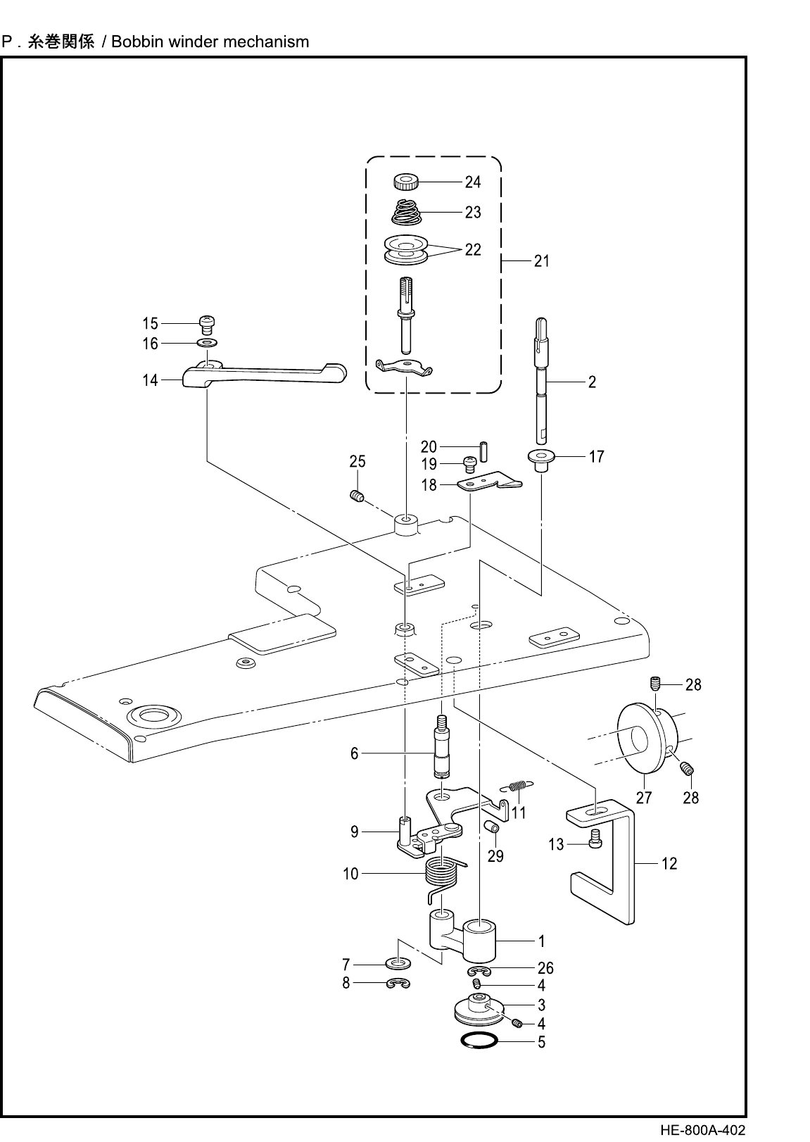 - P. Bobbin winder mechanism